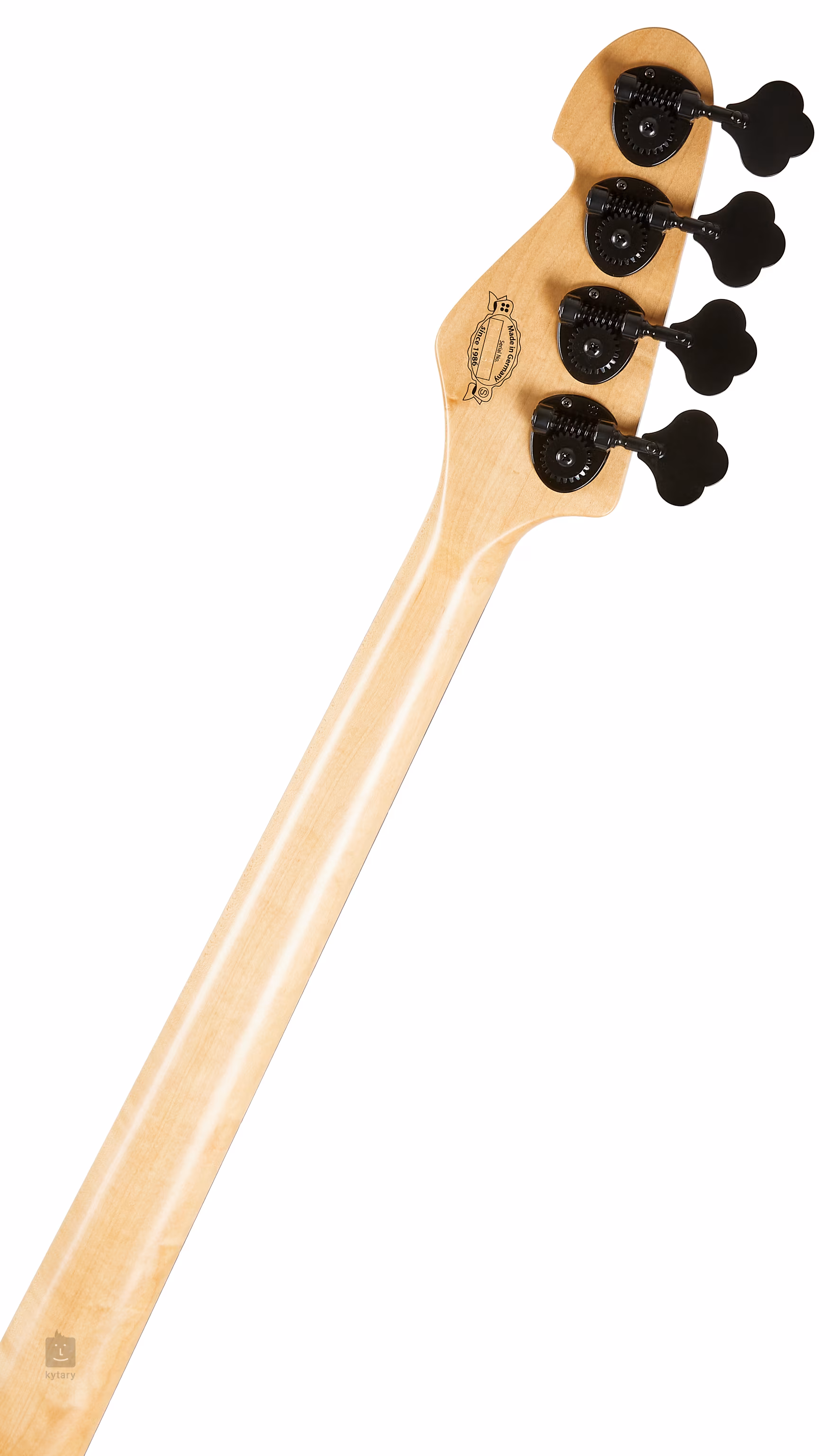 Der Korpus dieses Basses besteht aus hochwertiger europäischer Esche, während der Hals aus kanadischem Ahorn gefertigt ist. Er ist mit sechs Schrauben verschraubt, die ihn in einer absolut exakten Position halten. Das Griffbrett ist aus luxuriösem Ebenholz gefertigt und verfügt über 22 Bünde. Die Mensur des Instruments beträgt 864 Millimeter.