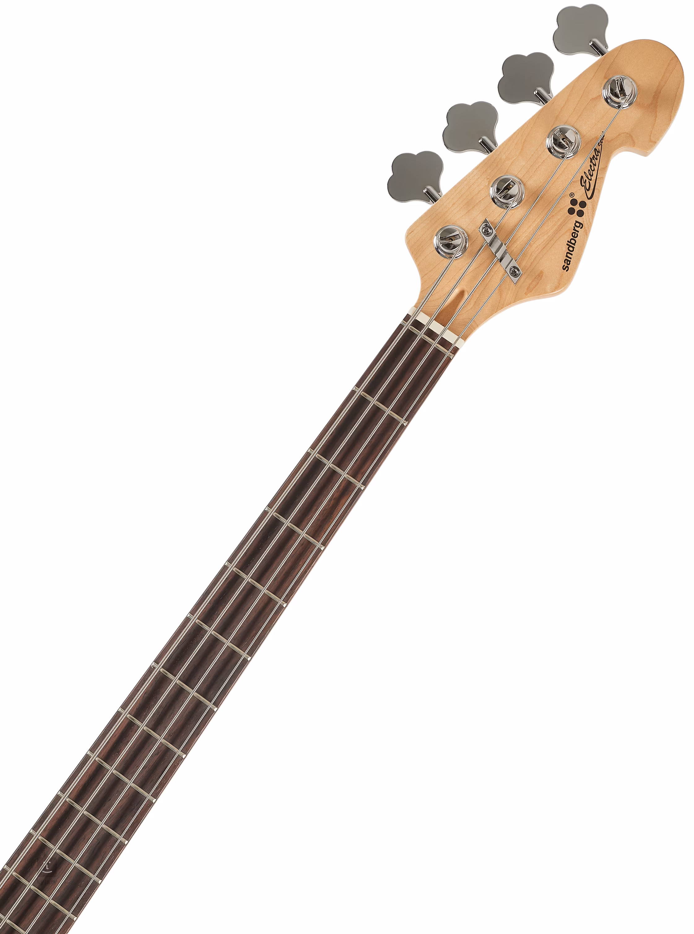 Der Korpus dieses Basses ist aus bewährter Linde gefertigt, der Hals ist aus kanadischem Ahorn gedrechselt. Er ist mit sechs Schrauben verschraubt, die ihn in einer absolut exakten Position halten. Das Griffbrett ist aus Palisander und verfügt über 22 Bünde. Die Mensur des Instruments beträgt 864 Millimeter. Die Gitarre ist mit einem Singlecoil-Tonabnehmer ausgestattet, nämlich dem Sandberg Splitcoil-Modell. Mit den Potentiometern für Höhen, Bässe und Lautstärke kann der Klang eingestellt werden, der auch als Aktiv/Passiv-Schalter dient.