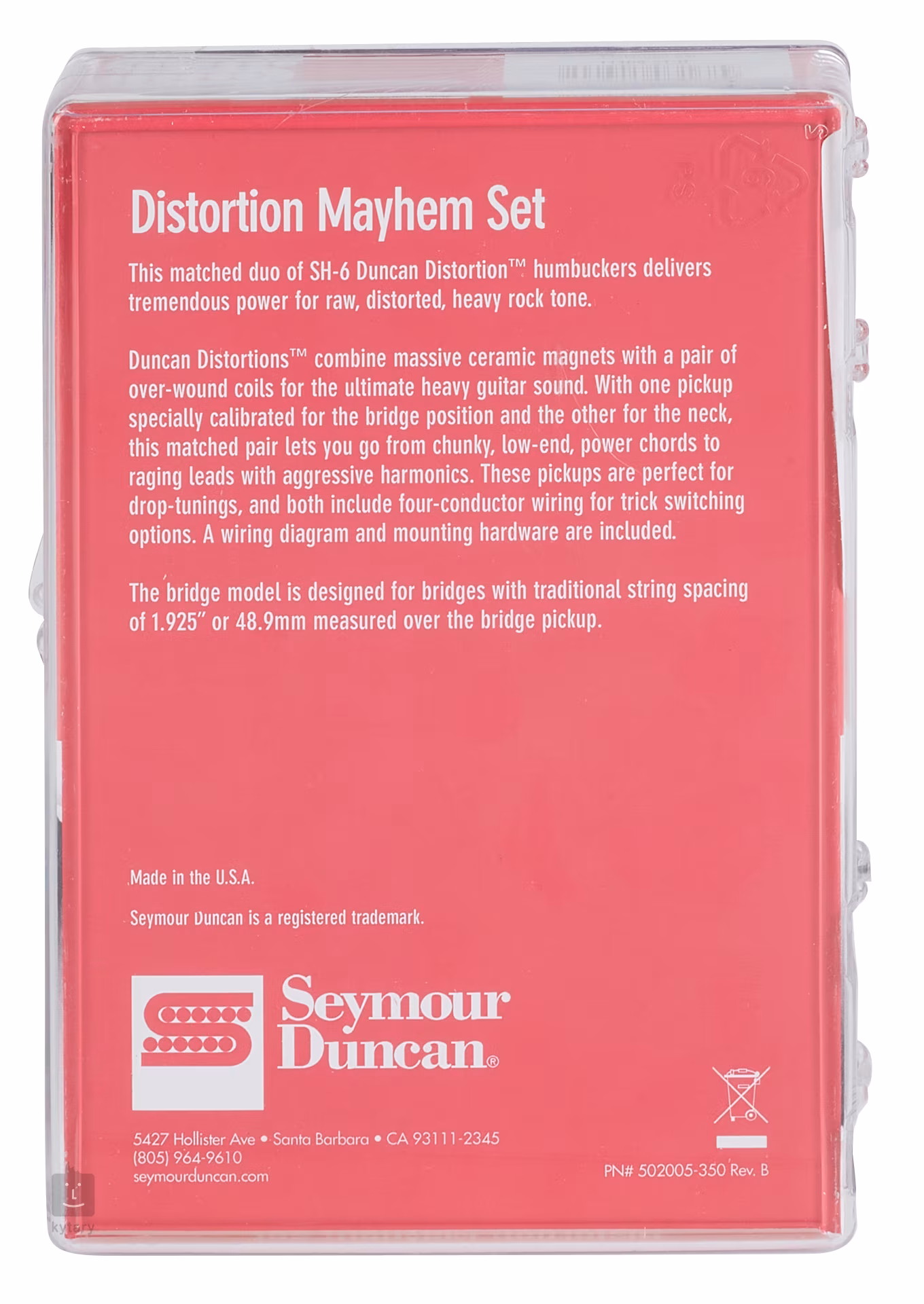 Dieses Set von SH-6 Tonabnehmern ist für alle Liebhaber moderner, aggressiver Musik gedacht. Ein großer Keramikmagnet und eine spezielle Spulenwicklung verleihen den Tonabnehmern einen vollen, druckvollen Ton mit Mitteltoncharakteristik. Sie eignen sich hervorragend für die Rhythmusbegleitung und für das Solospiel.
