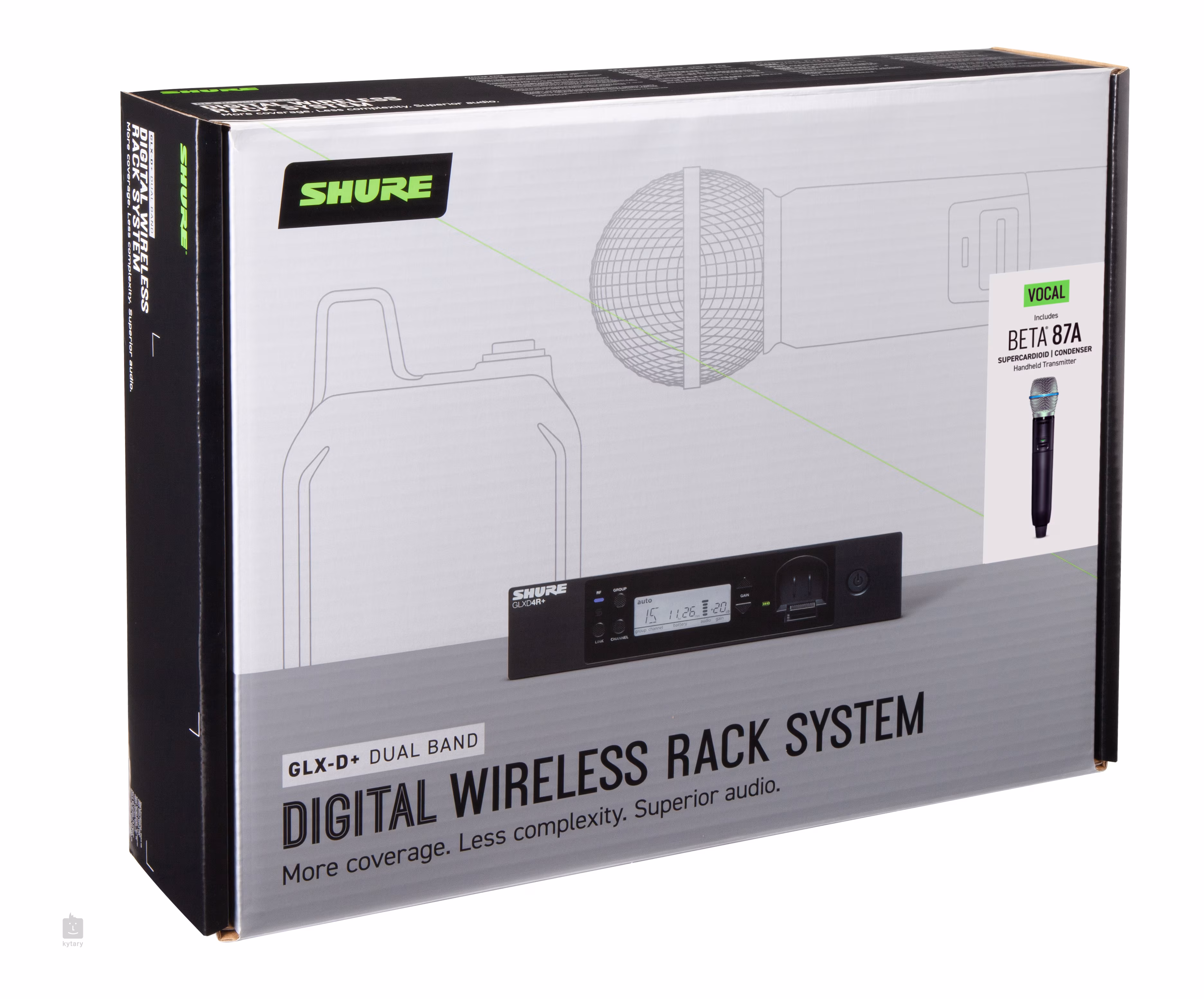 Das GLXD24R+ VOCAL SYSTEM WITH BETA87A Drahtlos-Set enthält das dynamische Gesangsmikrofon BETA87A und den GLXD4R+ Rackmount-Empfänger.
