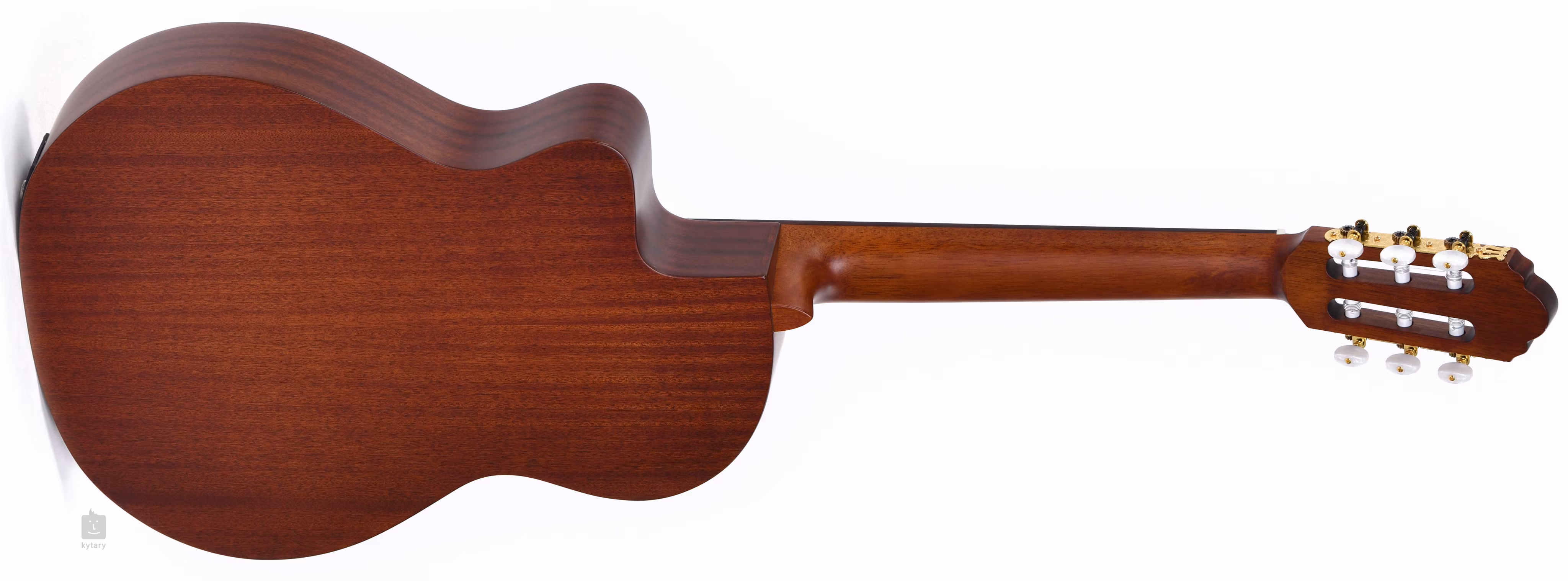 Sigma CTMC-2E ist eine modernere klassische elektroakustische Gitarre, die für Anfänger und erfahrene Musiker geeignet ist. Sie hat einen schmaleren, halbmassiven Korpus (80 mm tief), der aus einer massiven Zedernfront und einem Mahagoni-Boden und -Zargen besteht. Auf den schmaleren Mahagoni-Hals ist ein Palisander-Griffbrett mit neunzehn Bünden geklebt (die Breite des Nullbundes entspricht 47,63 mm).