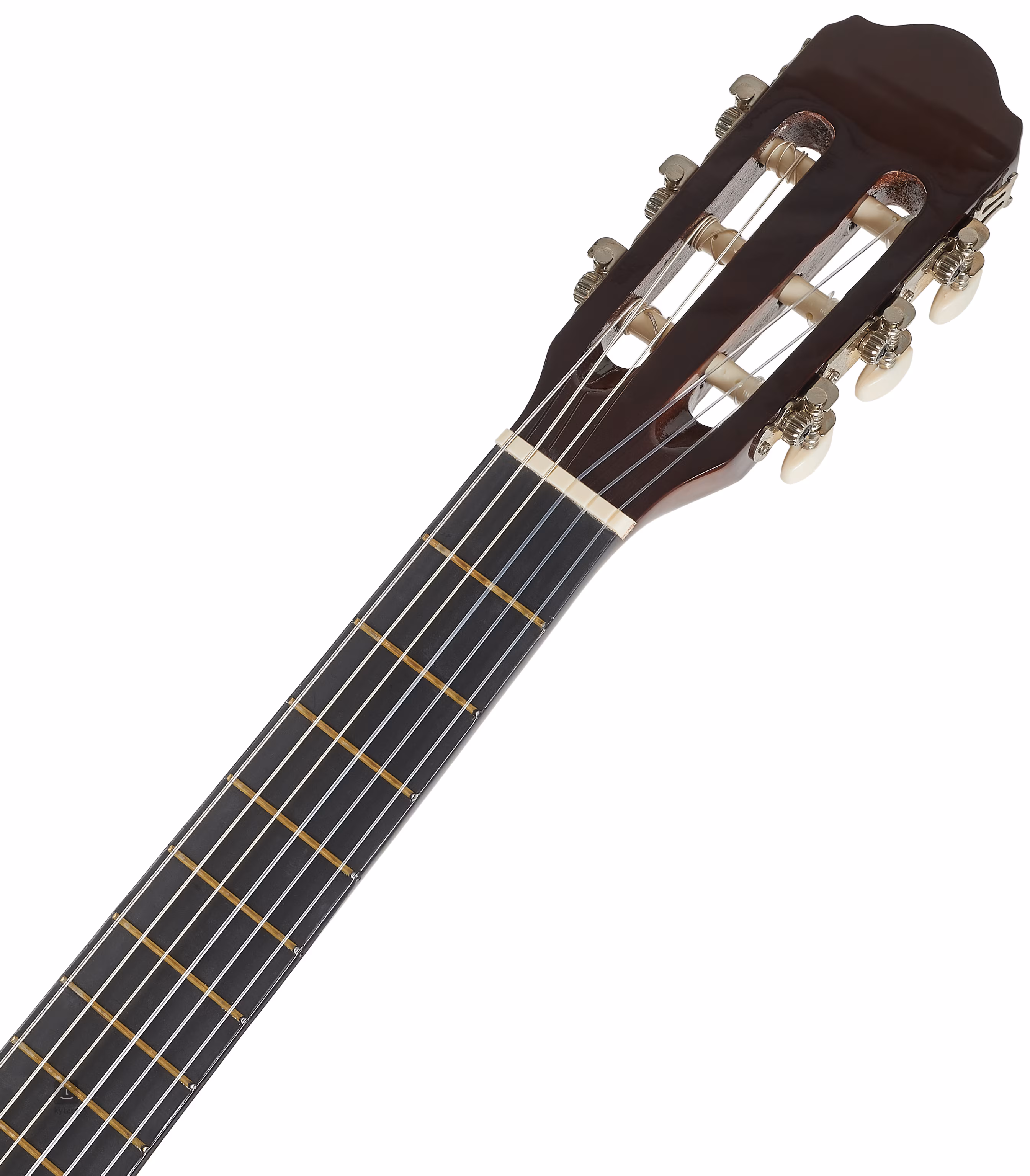Die Marisol-Klassikgitarren von Soundsation sind erschwingliche Instrumente für musikalische Anfänger. Die Marisol 34 Natural ist eine klassische Kindergitarre in 3/4-Größe mit einem Korpus aus laminierter Linde, der mit Glanzlack überzogen ist, einem Hartholz-Griffbrett, Standard-Stimmmechaniken und traditionellen Details wie schwarzer Bindung und dekorativer Rosette. Die Gitarre wird in einem Gigbag geliefert.