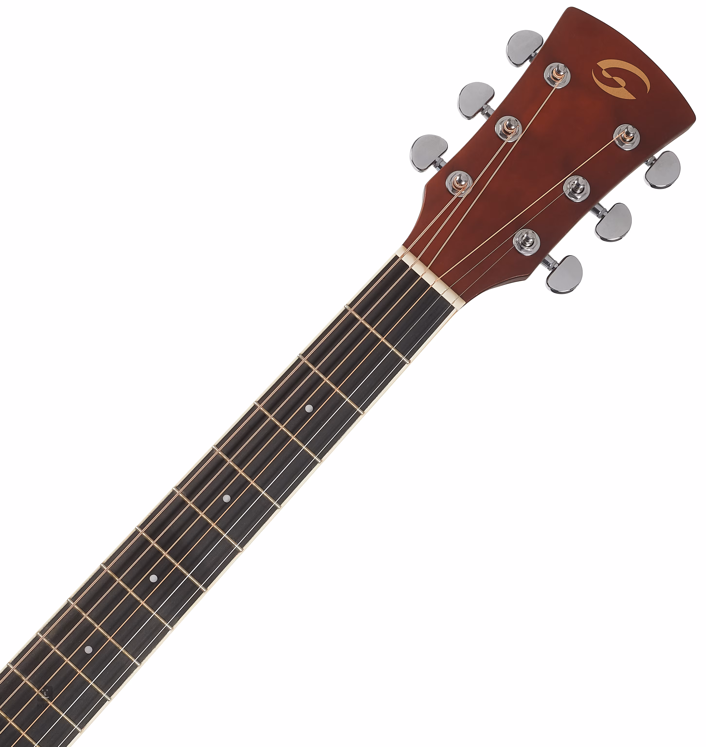 Der Korpus aus laminierter Linde bildet die Basis für den Klang des Instruments. Der Hals ist aus Okoumé und das Griffbrett ist aus modernem Verbundmaterial mit 20 Bünden gefertigt. Die Saiten sind in verchromten Stimmmechaniken und einem Palisandergriffbrett gelagert. Die stilvolle Verarbeitung wird durch die offenporige Lackierung und das weiße Body Binding unterstrichen.