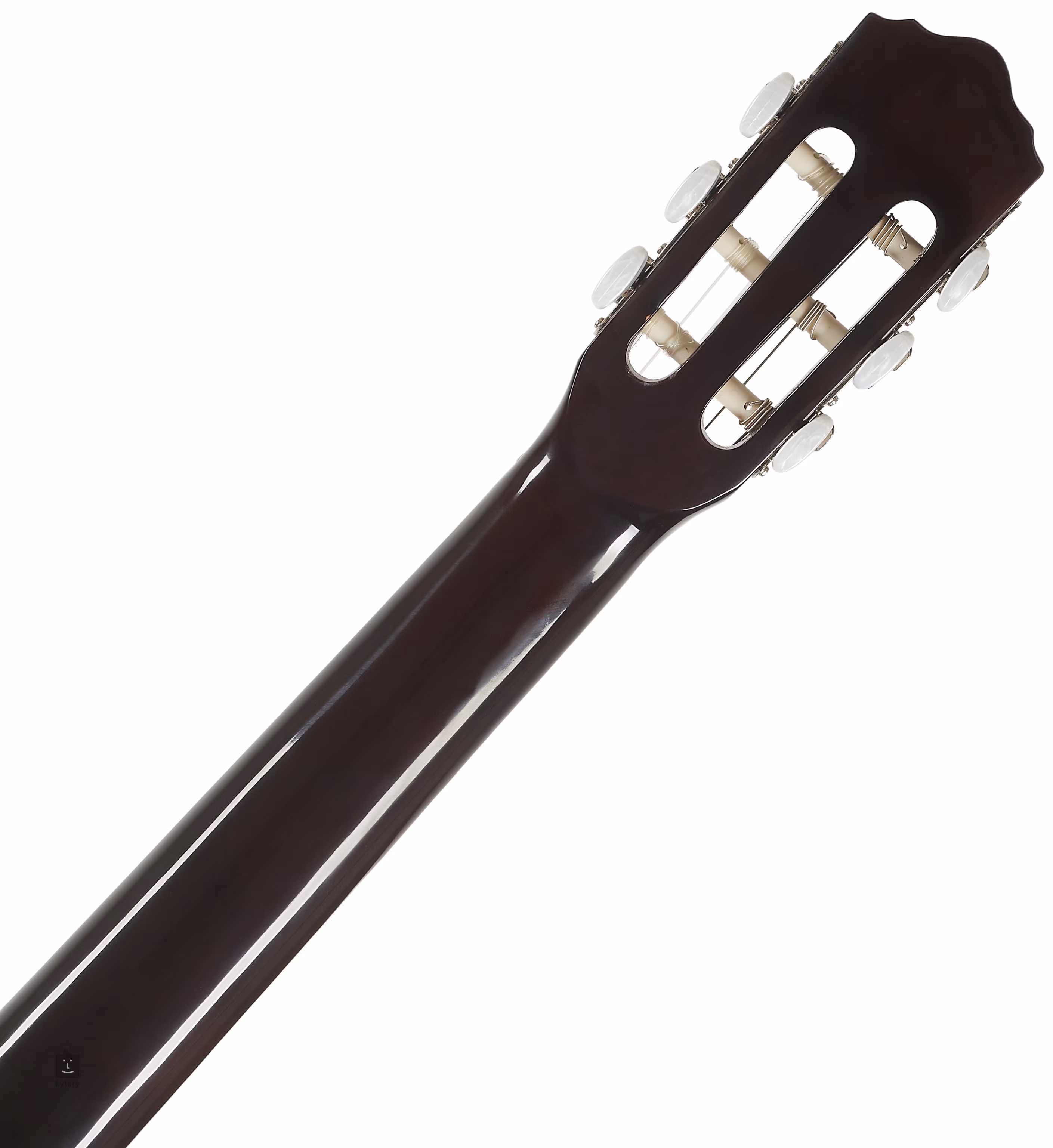 Die Mileia-Klassikgitarrenvon Soundsation sind erschwingliche Instrumente, die sich an aufstrebende Musiker richten. Die Mileia 44 Natural ist eine Konzertgitarre mit einem laminierten Korpus aus Fichte (Vorderseite) und Linde (Boden und Zargen), einem Okoumé-Hals und einem Griffbrett aus Schwarzholz mit neunzehn Bünden. Die Saiten sind in verchromten Stimmmechaniken mit Wirbeln aus Perlmuttimitat und einem Griffbrett aus Schwarzholz gelagert. Die stilvolle Verarbeitung wird durch weißes Binding und eine dekorative Rosette akzentuiert.