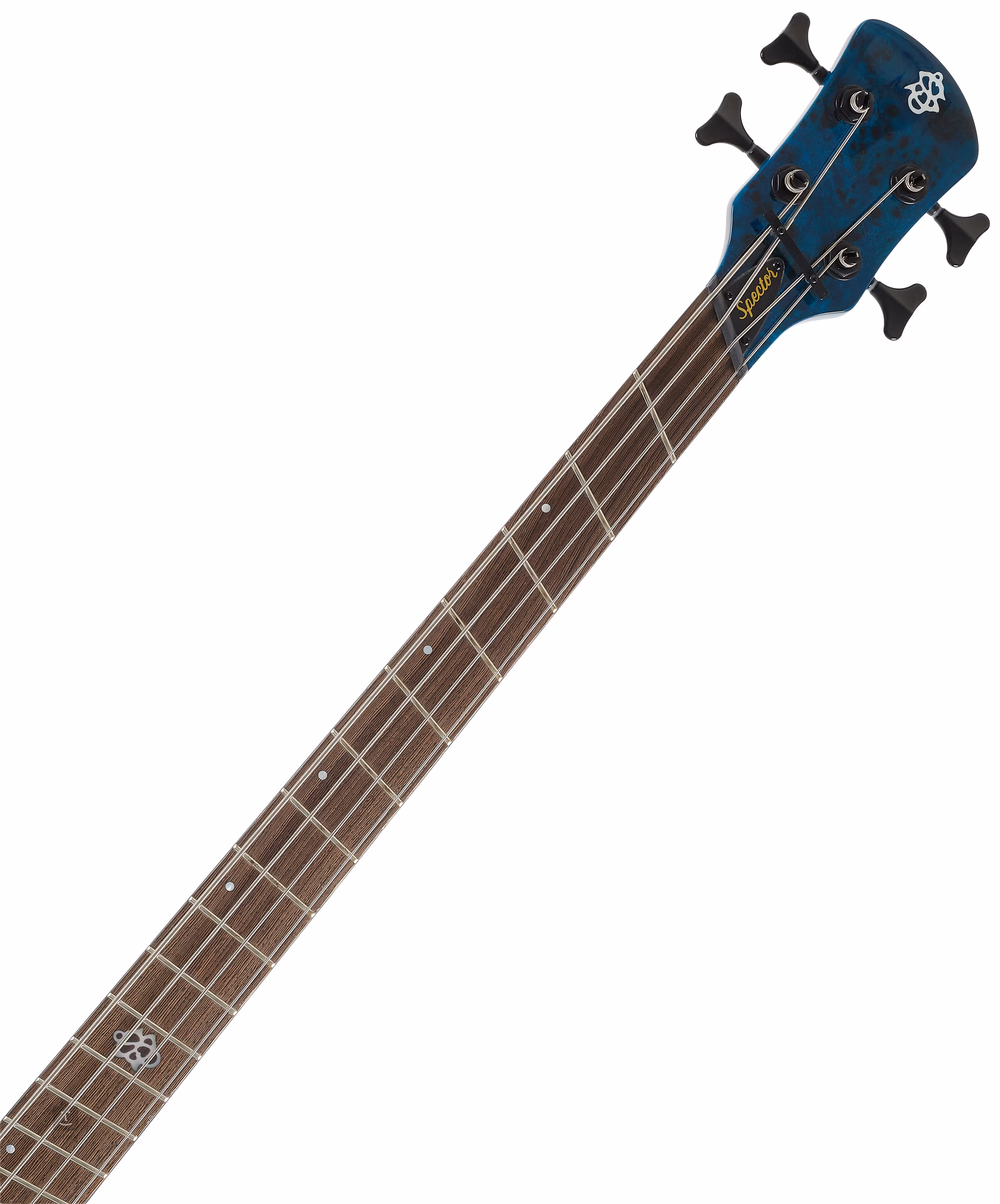 Der äußerst komfortable Korpus ist aus Sumpfesche gefertigt und mit Pappelwurzeln verziert. Das macht den Korpus leicht und sorgt für gute Resonanz. Der komfortable Hals, der aus fünf Lagen Ahorn und Wenge-Holz zusammengeleimt ist, bietet nicht nur zusätzliche Stärke, sondern auch ein stilvolles Design. Das Wenge-Griffbrett ist mit 24 Bünden, leuchtenden Positionsmarkierungen und einem Graphit-Griffbrett ausgestattet. Dank des durchgehenden Halses hat das Instrument ein sehr langes Sustain und einen sehr klaren Klang voller höherer harmonischer Informationen. Sie können sich auf hervorragende Flügelhörner freuen, und wenn Sie ein Slap-Liebhaber sind, müssen Sie sich bei diesem Bass keine Sorgen machen. Zudem ist der Hals dank der variablen Mensur (34"-36") sehr ergonomisch und bietet eine ausgewogene Spannung auf den einzelnen Saiten.