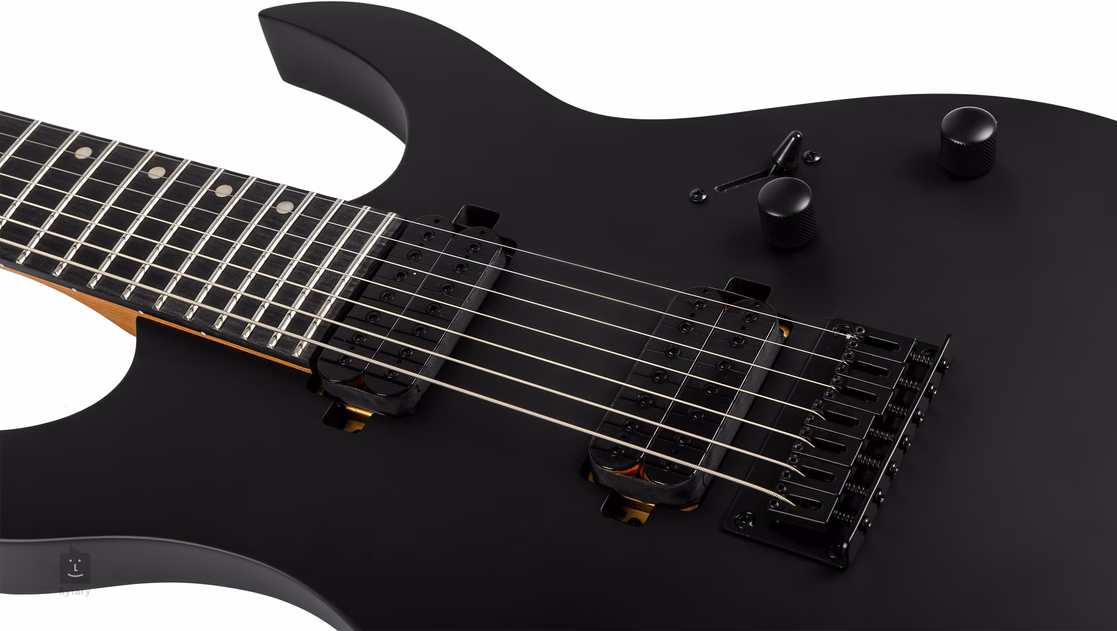 Die Spira Guitars S-407 MBK ist eine erschwingliche siebensaitige E-Gitarre im modernen Super ST-Design für Spieler zeitgenössischer Musikstile, die mit tieferen Stimmungen arbeiten - von modernem Rock und Metal bis zu Metalcore, Djent und anderen Subgenres. Der Korpus der Gitarre ist aus "gerösteter" Pappel gefertigt. Der Hals ist aus kanadischem Ahorn mit einem "Modern D"-Profil gefertigt, und das Griffbrett besteht aus modernem Verbundmaterial im Ebenholz-Design mit vierundzwanzig Jumbo-Bünden. Die Wärmebehandlung von Korpus und Hals macht das Holz stabiler.