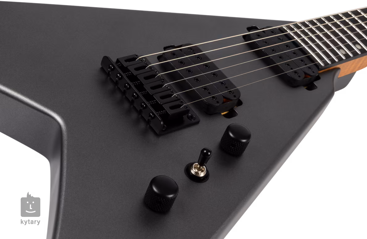 Die V-400 MSL E-Gitarre ist eine klassische "V"-Gitarre, d.h. angelehnt an die Form der Flying V-Modelle. Sie hat einen Korpus aus geröstetem Pappelholz, einen Hals aus kanadischem Ahorn mit einem "Modern D"-Profil und ein Ebenholz-Griffbrett mit vierundzwanzig Jumbo-Bünden. Die Wärmebehandlung von Korpus und Hals macht das Holz der Gitarre stabiler.