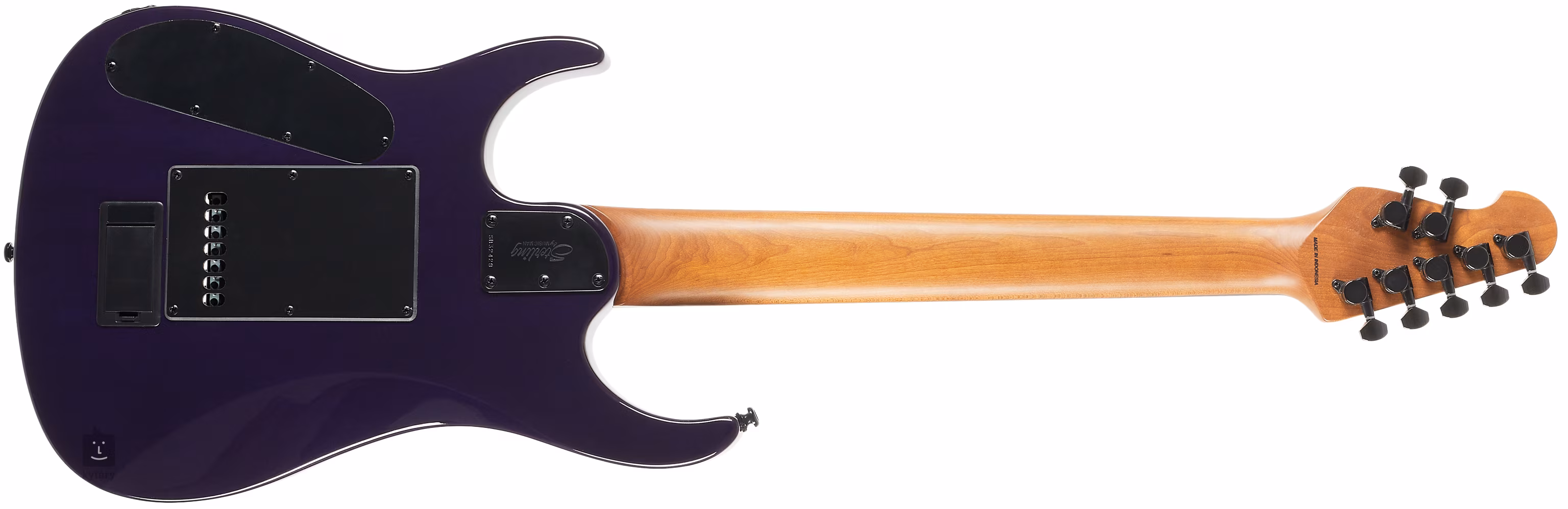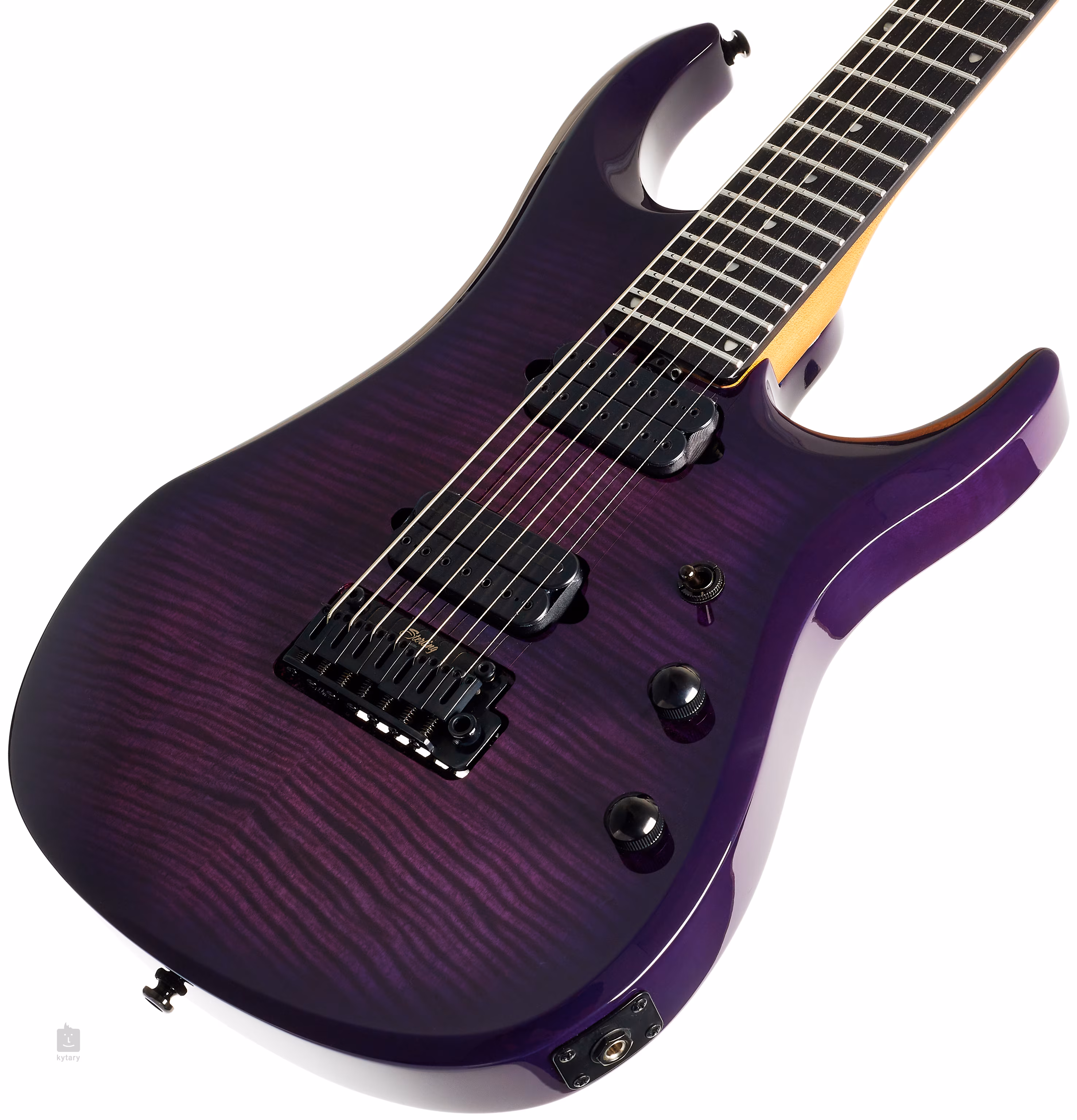 Und genau das ist bei dem siebensaitigen Super ST-Modell John Petrucci JP157D FM Purple Nebula der Fall, das in Zusammenarbeit mit John Petrucci von der berühmten amerikanischen Prog-Metal-Band Dream Theater entwickelt wurde. Der leichte Korpus aus Nyatoh-Holz im klassischen Super ST-Double-Cut-Design ist mit einem spektakulären Flammenahorn-Deckenfurnier verziert. Eine glänzende Lackierung und die Purple Nebula Färbung bringen den geflammten Ahorn besonders zur Geltung.