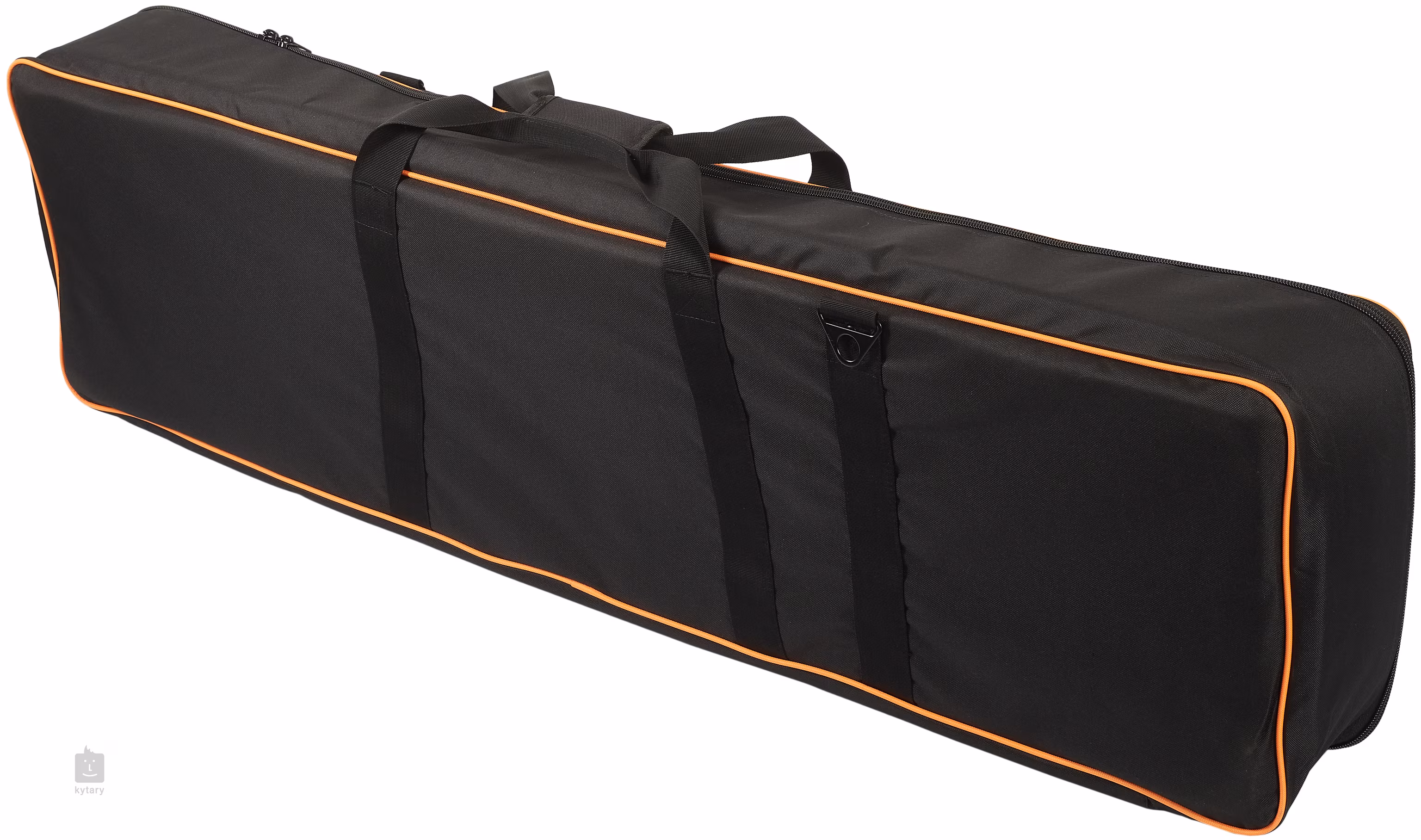 Die Außentasche bietet Platz für alles notwendige Zubehör wie Netzadapter, Kopfhörer oder kleine Pedale. Die Tasche besteht aus robustem Polyestergewebe und bietet Schutz und Komfort beim Transport und bei der Aufbewahrung des Instruments. Der Trageriemen wird mit Metallklammern befestigt, und Silikonpads auf der Unterseite verringern die Abnutzung des Bodens.