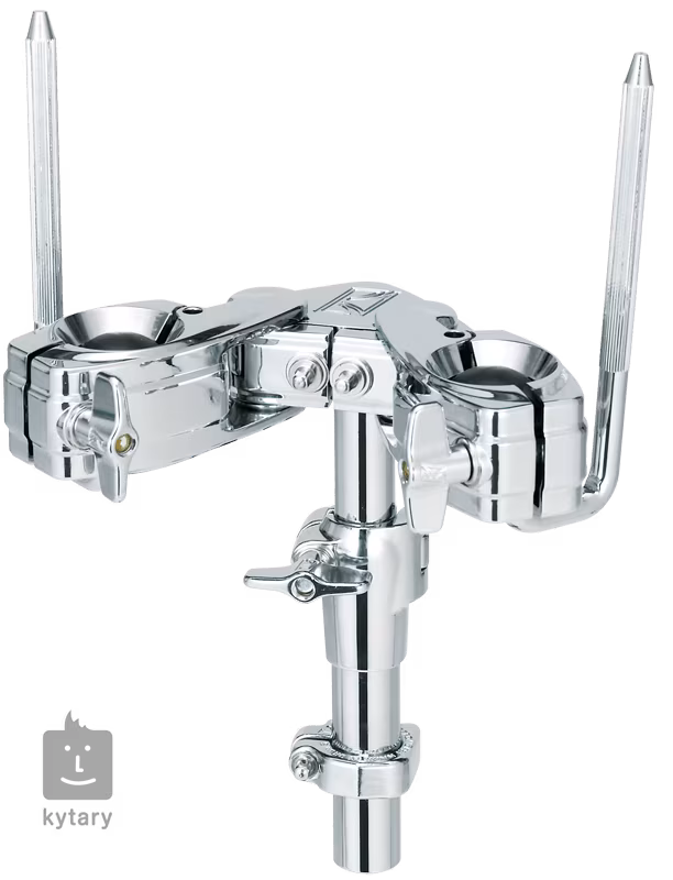 Verchromter Doppelhalter für Tom Drums. Die Breite des unteren Rohrs entspricht 25,4 mm.