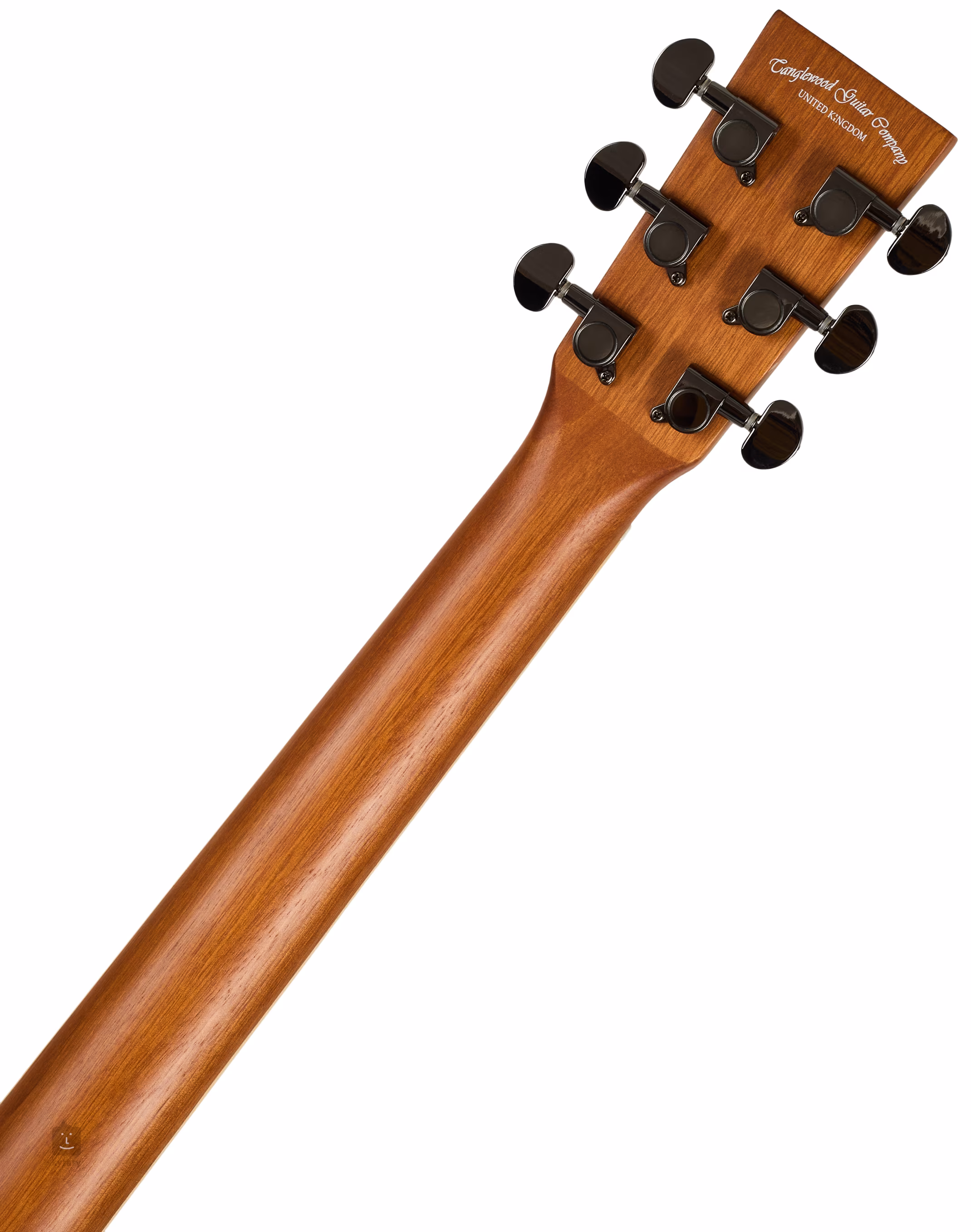 Die Tanglewood TRU4 CE BW LH ist eine elektroakustische Gitarre für Linkshänder vom Typ "Super Folk", d.h. ein Instrument mit einem schmaleren und flacheren Korpus als die Dreadnought. Die Vorderseite der Gitarre besteht aus massiver Fichte, der Boden und die Zargen aus laminiertem Nussbaum (Black Walnut). Der Mahagoni-Hals ist auf ein Eboncore-Verbundgriffbrett mit 20 Bünden geleimt. Eine praktische untere Korpusaussparung erleichtert das Spielen in den höheren Lagen des Griffbretts.