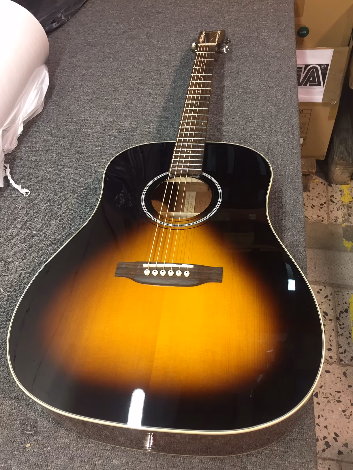 Das Soundsystem wird von der Fishman Sonitone-Elektronik angetrieben, wobei die Regler dezent in das Schallloch der Gitarre eingelassen sind. Die Saiten werden von verchromten Stimmmechaniken und einem Walnuss-Griffbrett gehalten. Die schöne Verarbeitung wird durch das helle Binding, das Vintage Sunburst Gloss Top Colour Finish und ein praktisches Pickguard, das den Hochglanzlack des Instruments vor Kratzern schützt, noch unterstrichen.