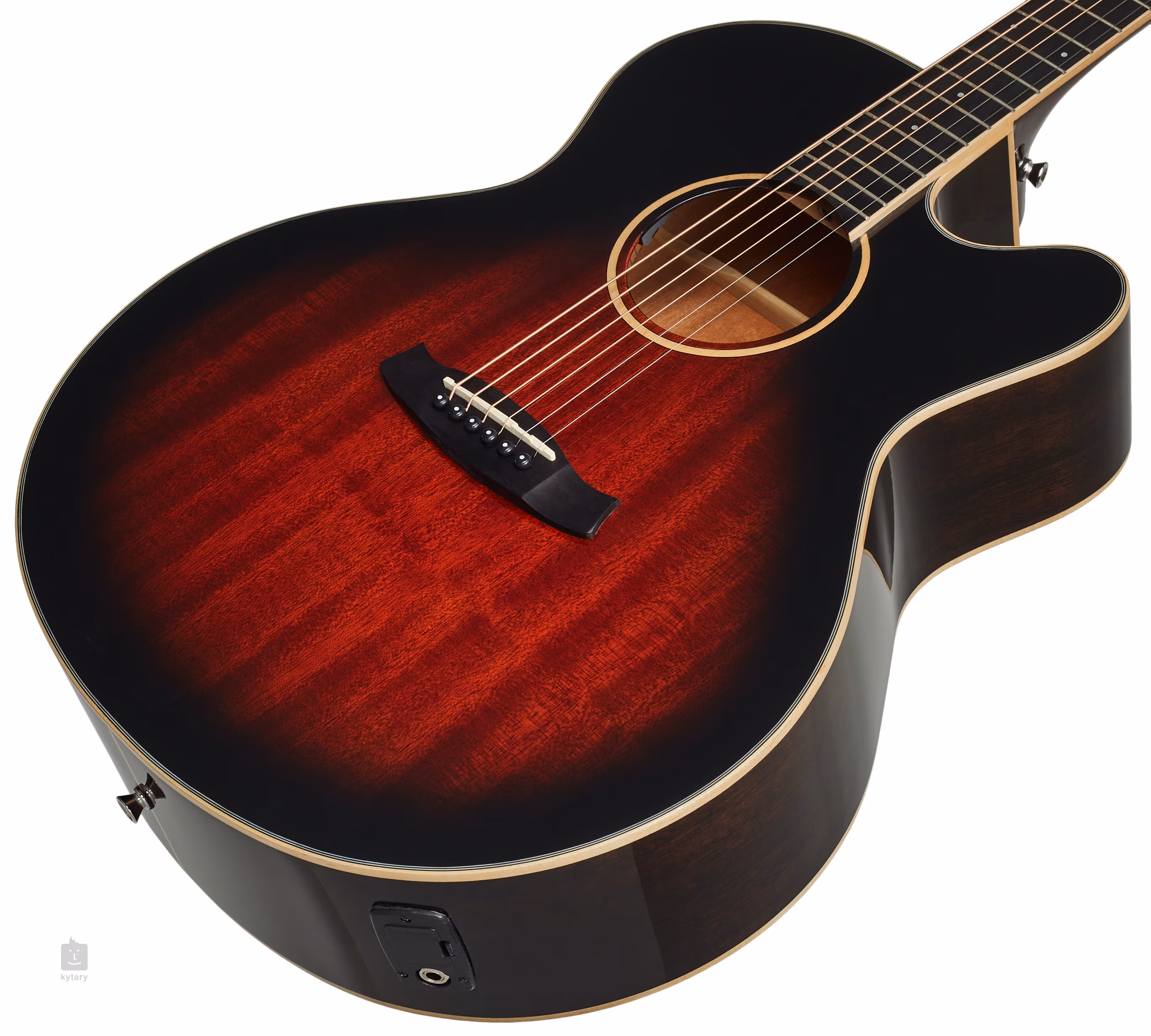 Die TW7 CE AVB ist eine elektroakustische Gitarre mit einem großen Super-Jumbo-Resonanzkörper aus Mahagoni - Massivholz vorne und Sperrholz hinten. Der Hals aus Nato-Holz, dem so genannten "östlichen Mahagoni", ist auf ein Griffbrett aus modernem Verbundwerkstoff mit 20 Bünden geleimt. Eine praktische untere Korpusaussparung erleichtert das Spielen in den höheren Lagen des Griffbretts.
