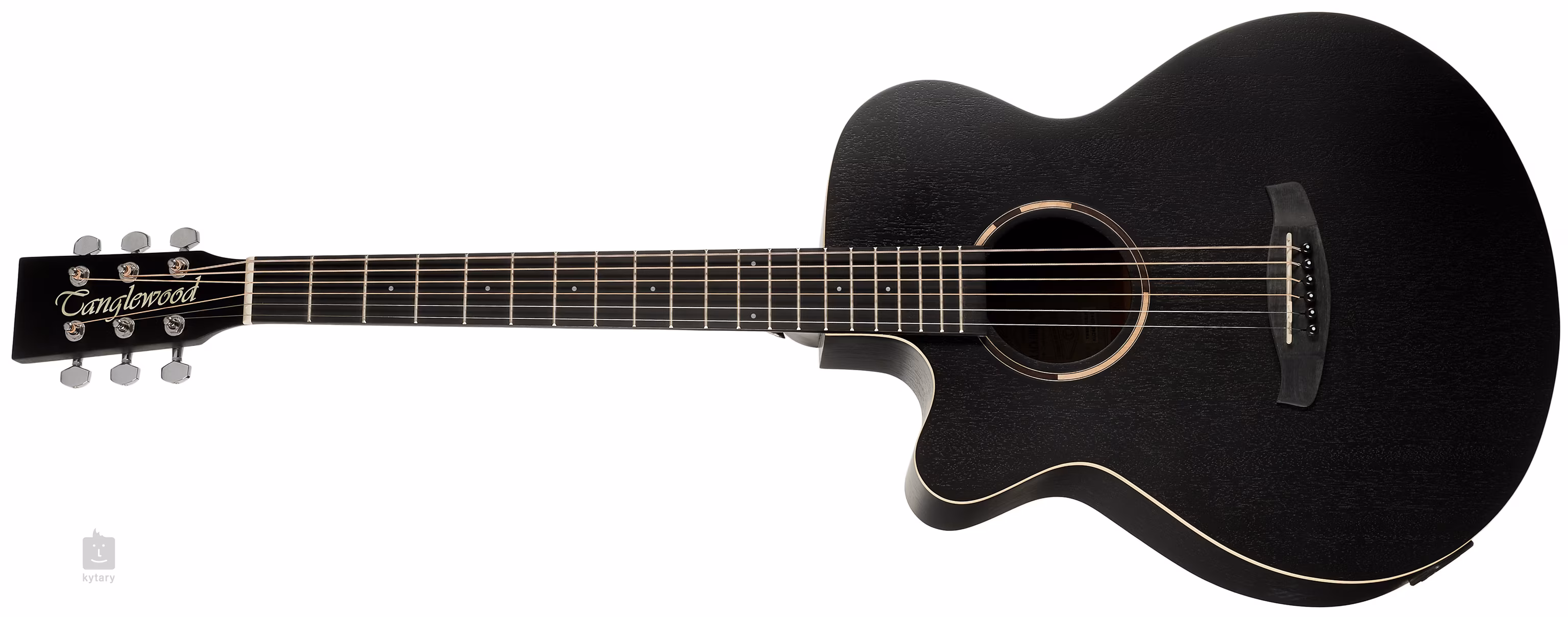 Die Tanglewood Blackbird TWBBSFCELH ist eine elektroakustische Gitarre für Linkshänder vom Typ "Super Folk", d.h. ein Instrument mit einem schmaleren und flacheren Korpus als die Dreadnought. Der Korpus der Gitarre ist aus laminiertem afrikanischem Mahagoni gefertigt. Der Mahagoni-Hals ist auf ein modernes Komposit-Griffbrett mit 20 Bünden geleimt. Die Saiten sind in verchromten Druckgussmechaniken und einer Komposit-Kopfplatte gelagert. Das Vintage-Gefühl und die Haptik des Instruments werden durch die Smokestack Black Satin-Beschichtung der Decke noch unterstrichen.
