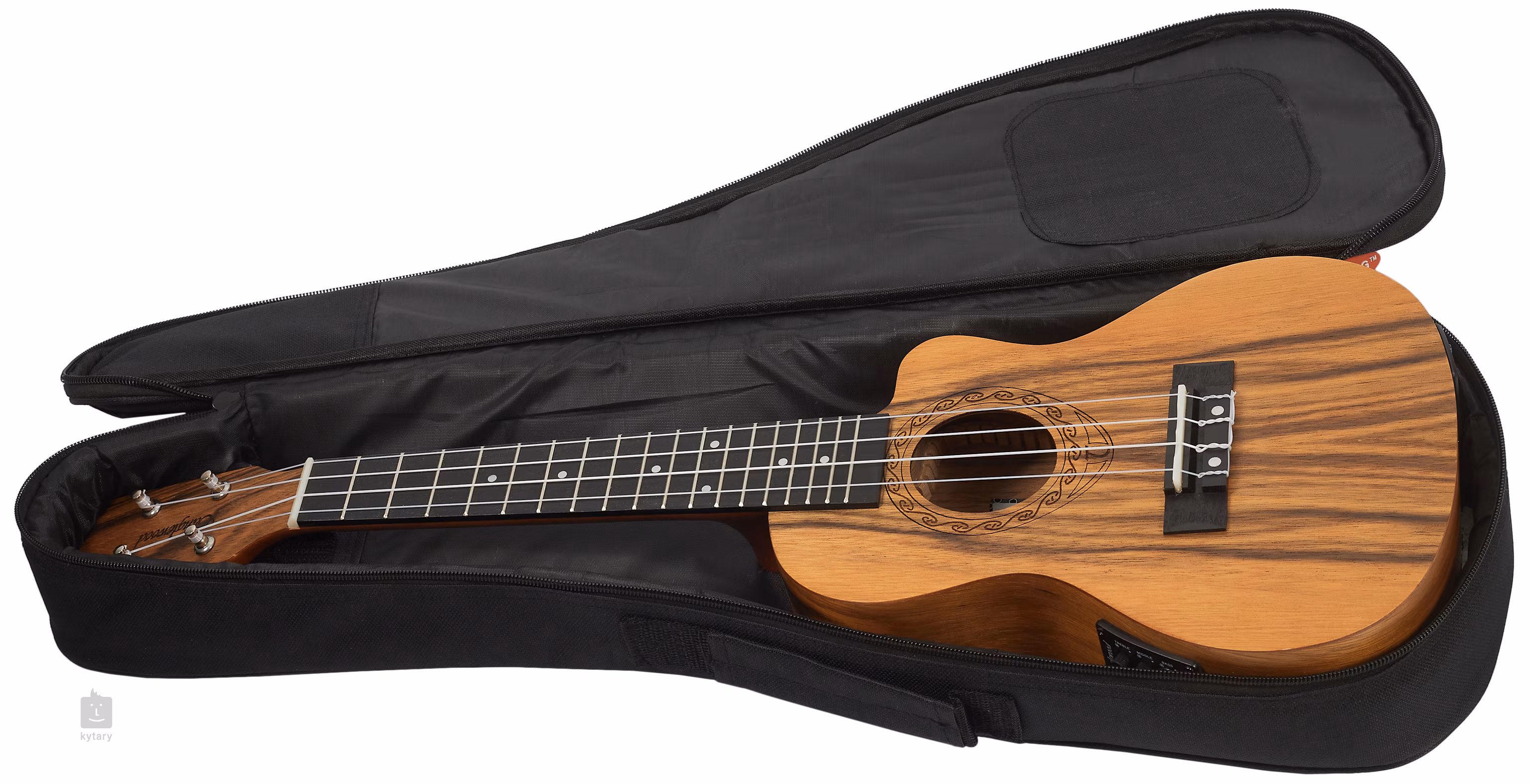 Der TEQ-TUT Vorverstärker mit eingebautem Stimmgerät bietet die Möglichkeit der Klangverstärkung. Die Ukulele wird in einem Gigbag geliefert.