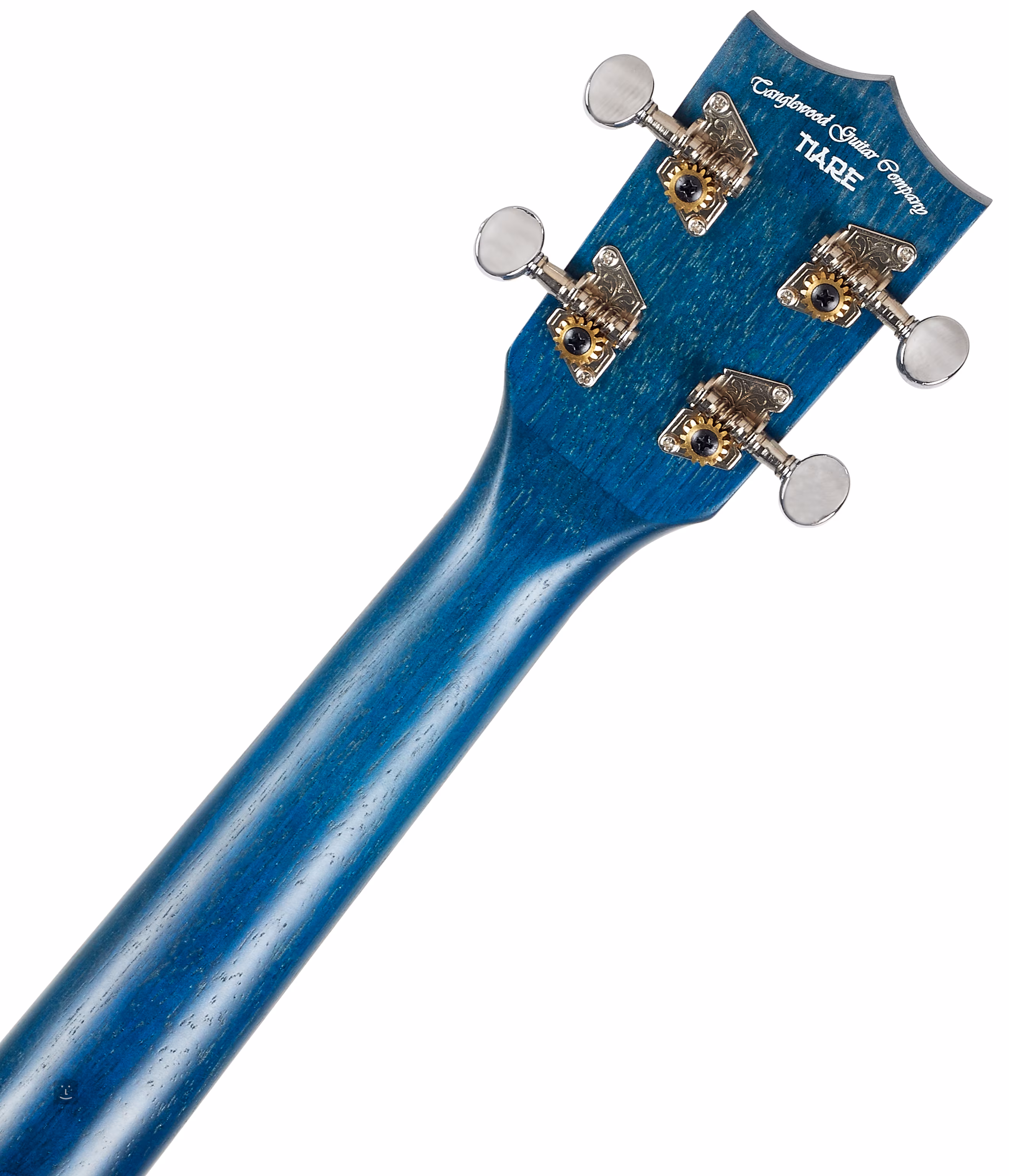 Die Saiten werden in verchromten gitarrenähnlichen Mechaniken und einem Griffbrett aus schwarzem Walnussholz gehalten. Die schöne Verarbeitung wird durch die dekorative Rosette und das Thru Blue Satin Finish der Decke unterstrichen.