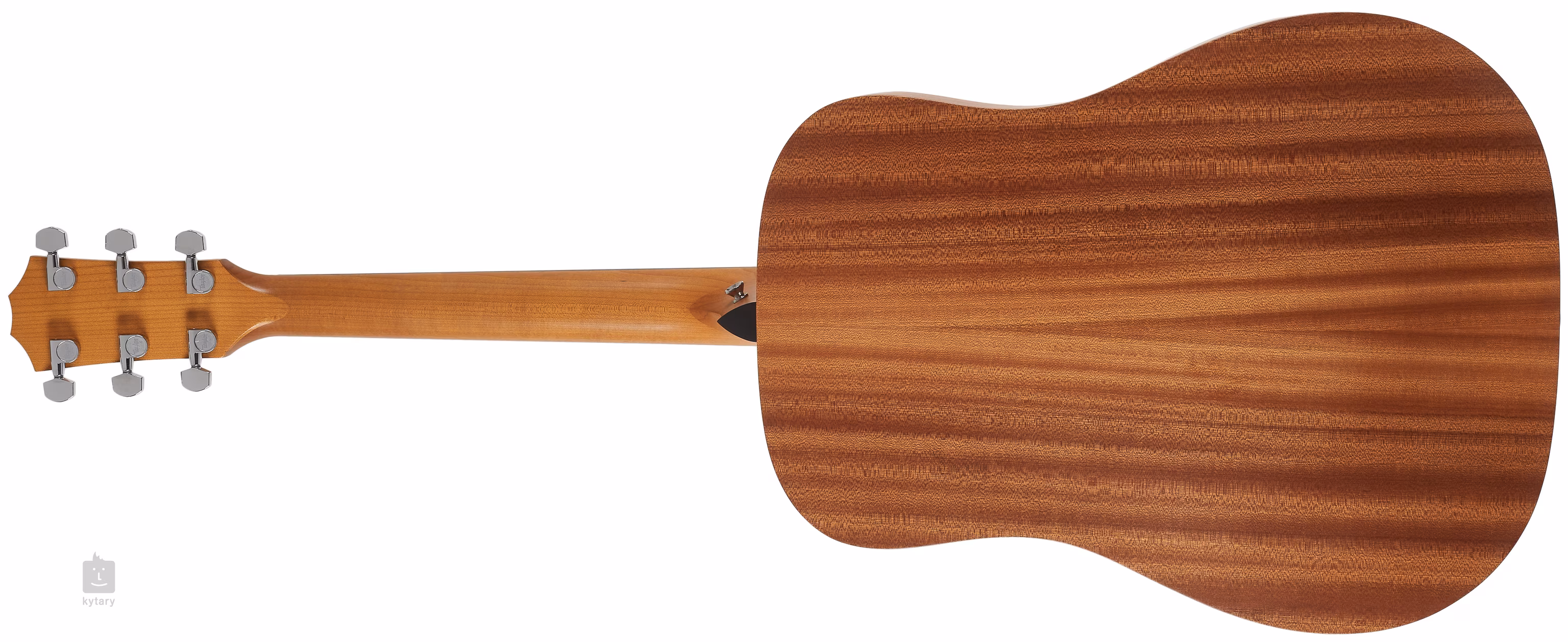 Die elektroakustische Gitarre Academy 10e LH für Linkshänder bietet die beliebte Dreadnought-Korpusform. Die Vorderseite des Instruments besteht aus massiver Sitka-Fichte, während die Zargen und der Boden aus laminiertem Sapele gefertigt sind. Der Mahagoni-Hals ist auf ein Ebenholz-Griffbrett geklebt, das mit zwanzig Bünden ausgestattet ist, deren Positionen klassisch mit Perlmutt-Punkten markiert sind. Die ergonomische Armlehne trägt ebenfalls zum Komfort des Spielers bei. Für eine stabile Stimmung sorgen die NuBone Zero Fret Saiten, die in verchromten Druckguss-Mechaniken gelagert sind.