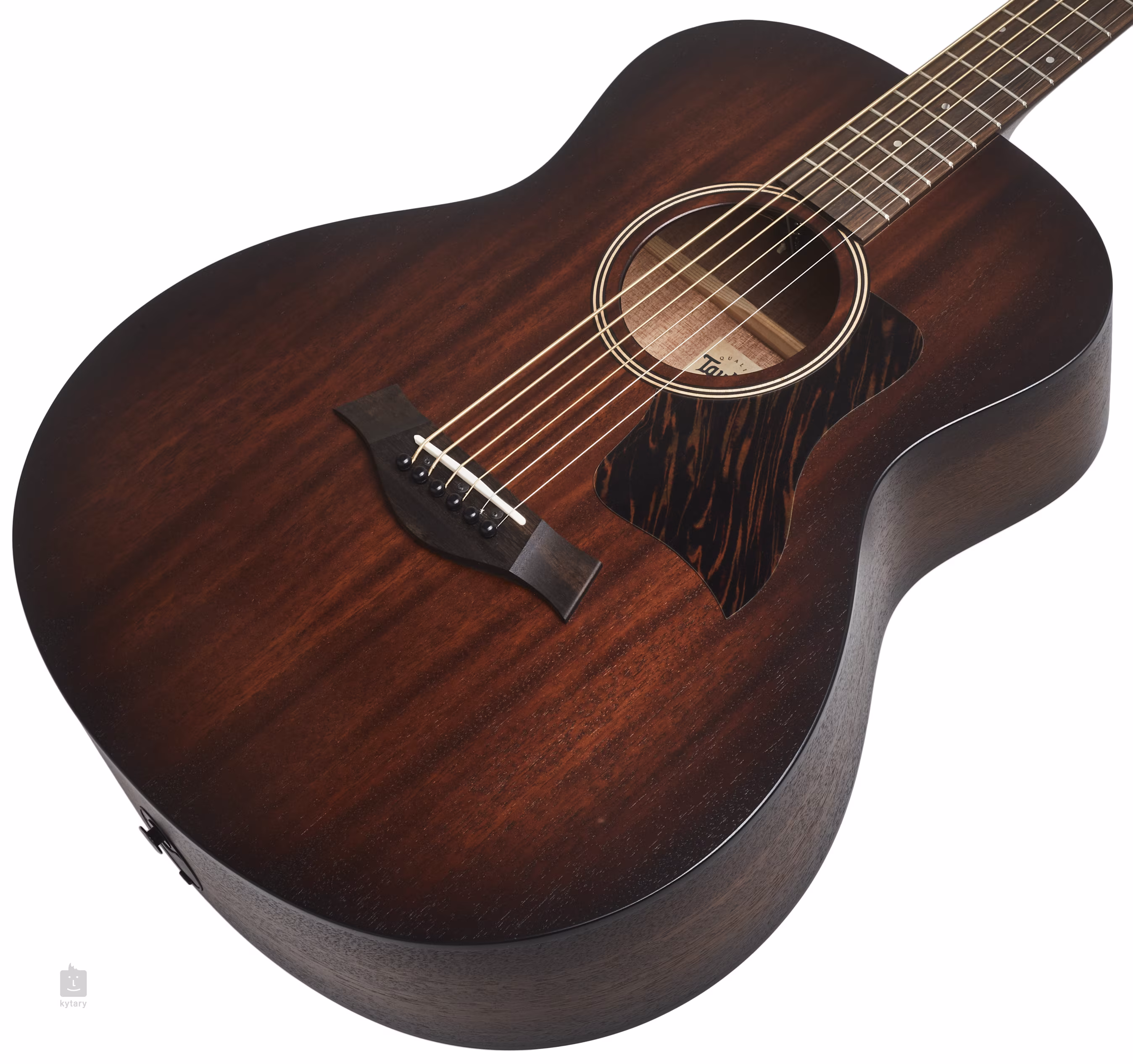 Die Gitarre ist mit hochwertiger Firmenelektronik ausgestattet. Das Taylor Expression System 2 verwendet drei speziell entwickelte unabhängige Piezo-Tonabnehmer, die sich hinter dem Griffbrett befinden. Anders als herkömmliche Tonabnehmer nehmen sie nicht die Auf- und Abwärtsbewegung des Brettes wahr, sondern die natürliche Hin- und Herschwingung des Griffbretts. Dadurch wird der Klang viel natürlicher, farbenreicher und angenehmer, und er reagiert besser auf die Dynamik Ihres Spiels. Gleichzeitig macht der neue Vorverstärker das Signal um 25 % stärker. Natürlich gibt es keine Rückkopplungen mehr und Sie können Lautstärke, Bässe und Höhen einstellen.