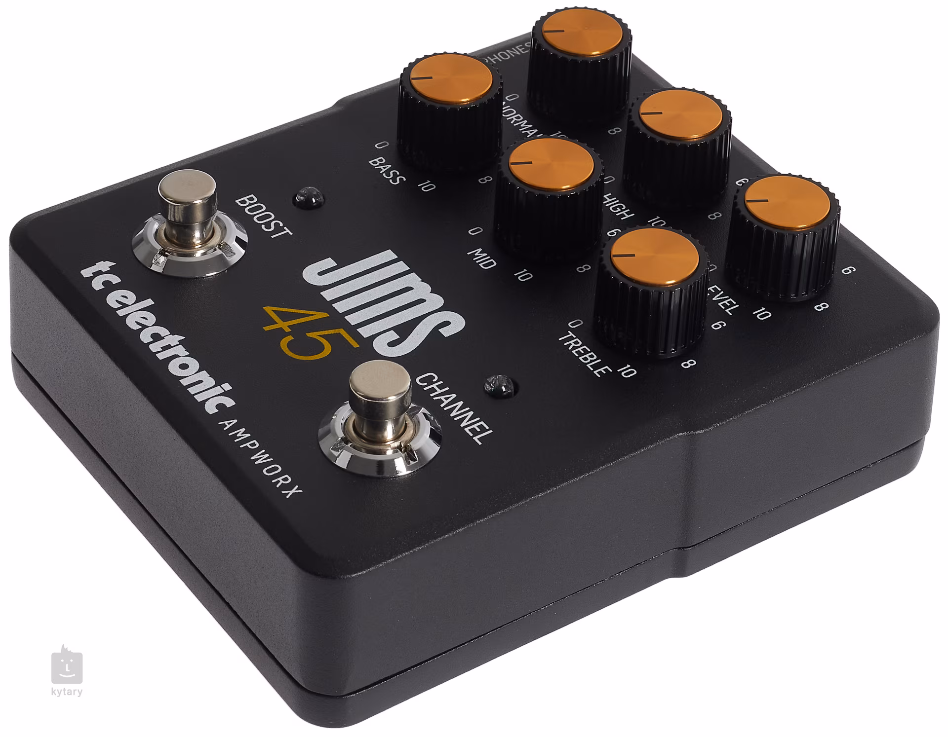 Der TC Electronic JIMS 45 Preamp ist ein zweikanaliger Vorverstärker im Pedal-Effekt-Format, der den Sound der 1965er JTM45-Gitarre originalgetreu nachbildet. Er bietet zwei Kanäle im klassischen Clean- und More Gain/Crunch-Split, unabhängige Gain-Regler für Instrumente mit niedrigeren und höheren Eingangssignalpegeln wie bei echten Instrumenten mit Überbrückungskabeln, einen Vierband-EQ (Bass, Mid, Treble, Presence) und einen Ausgangspegelregler. Die Kanaleinstellungen werden beim Umschalten automatisch gespeichert.