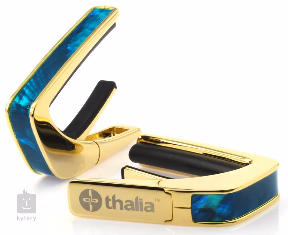 Dieses Modell stammt aus der Exotic Shell Series, bei der verschiedene Arten von exotischem Perlmutt verwendet werden, um ein einzigartiges Design zu erzielen. In diesem Fall ist der Metallkörper des Kapodasters (in Schwarz, Chrom oder Gold) mit eleganten türkisfarbenen Perlmutt-Verzierungen versehen. Ein absolut einzigartiger Kapodaster, der auf jeder Gitarre hervorsticht.