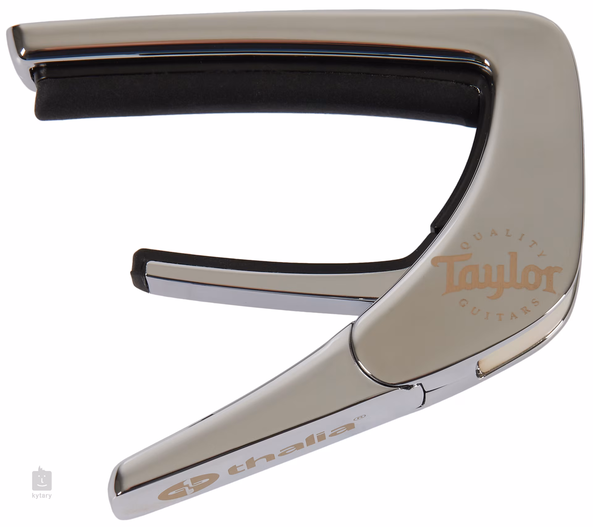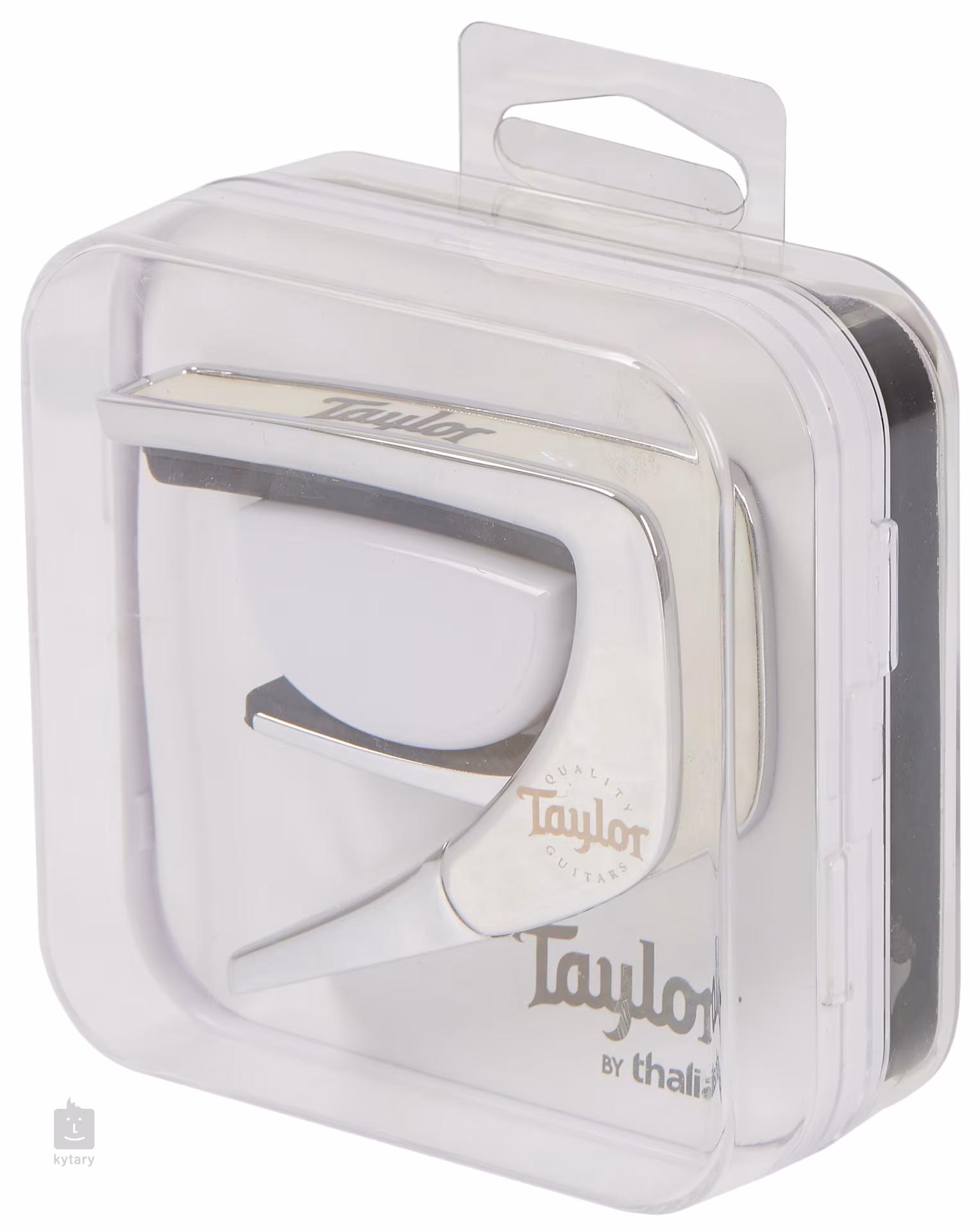 Dieses Modell stammt aus einer offiziell von Taylor lizenzierten Serie und trägt das Logo der Marke. Während der Korpus des Kapodasters aus Metall (in Schwarz, Chrom oder Gold) gefertigt ist, sorgt das in weißes Perlmutt eingravierte Taylor-Logo für das elegante Design. Ein absolut einzigartiger Kapodaster, der einfach nicht aus der Mode kommen will. Die Kapodaster dieser Serie werden mit zwei austauschbaren Einsätzen für 15" Radius in zwei verschiedenen Spannungen (Standard und höher) geliefert.