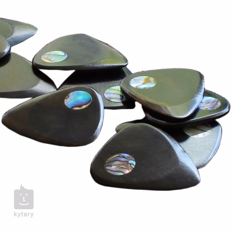 Ob du ein Geschenk für einen begeisterten Gitarristen suchst oder einfach nur auf der Suche nach dem perfekten Sound bist und Plektren aus unkonventionellen Materialien ausprobieren möchtest, bei Timber Tones wirst du fündig. Dieses Plektrum aus der Planet Tones Serie ist aus hartem afrikanischen Ebenholz gefertigt, was ihm einen durchdringenden und klaren Klang verleiht. Dadurch eignet es sich besonders gut für E- oder Oboengitarren. Es hat eine Standardform und eine Dicke von 2,5 mm, die sich zur Spitze hin auf 0,7 mm verjüngt. Die Verzierung mit Paua-Abalone-Muscheln verleiht ihm ein elegantes Design.