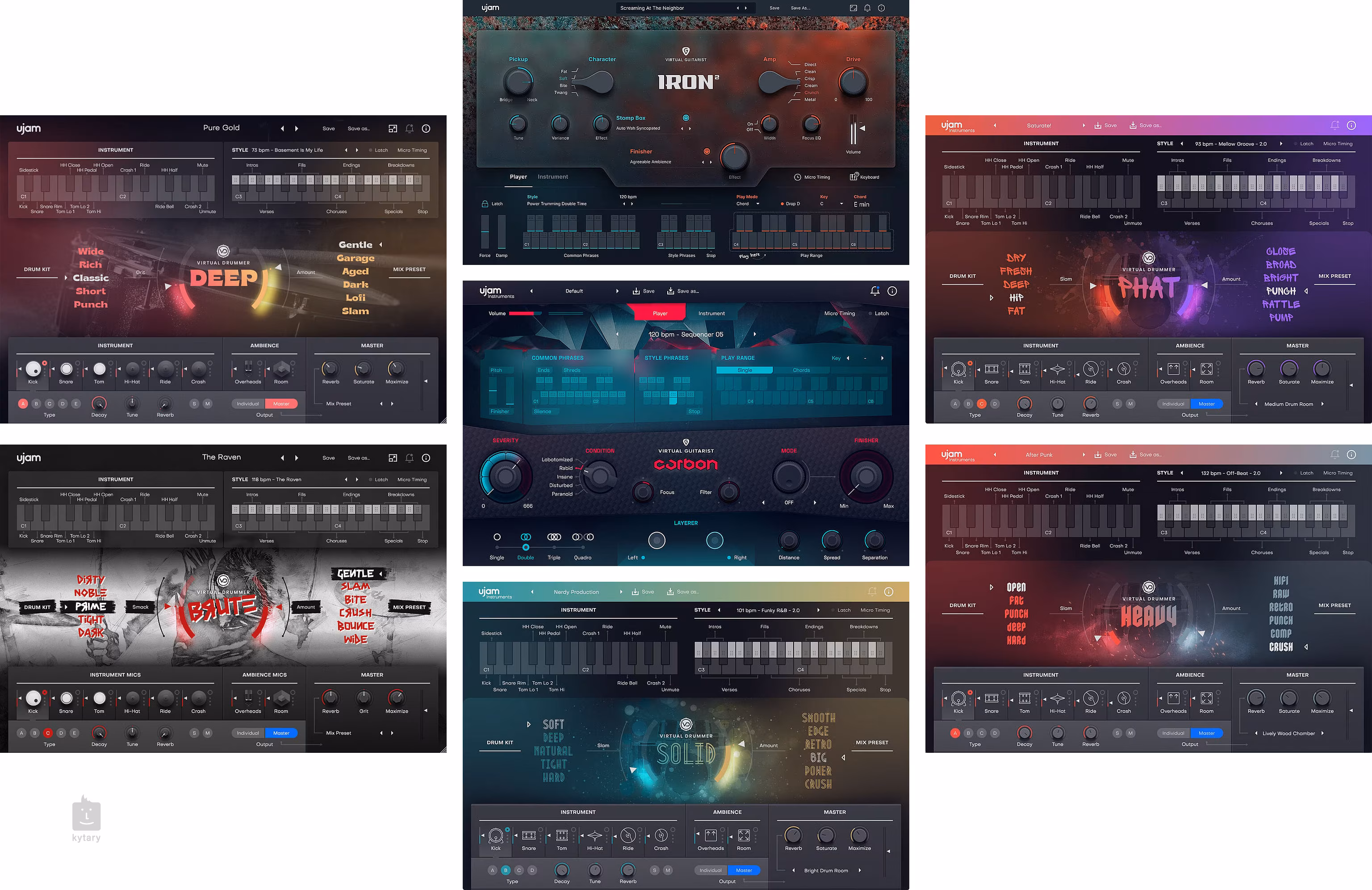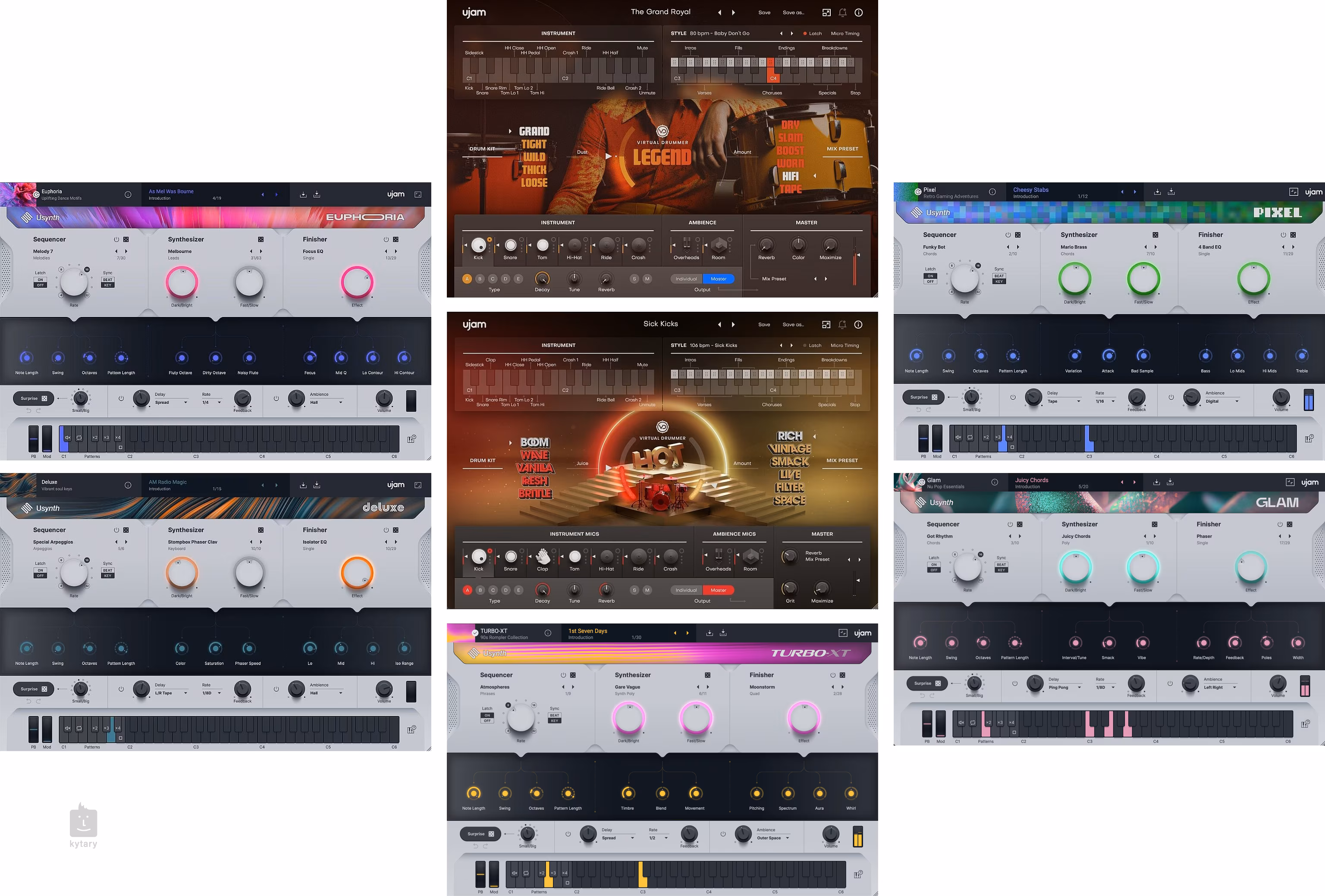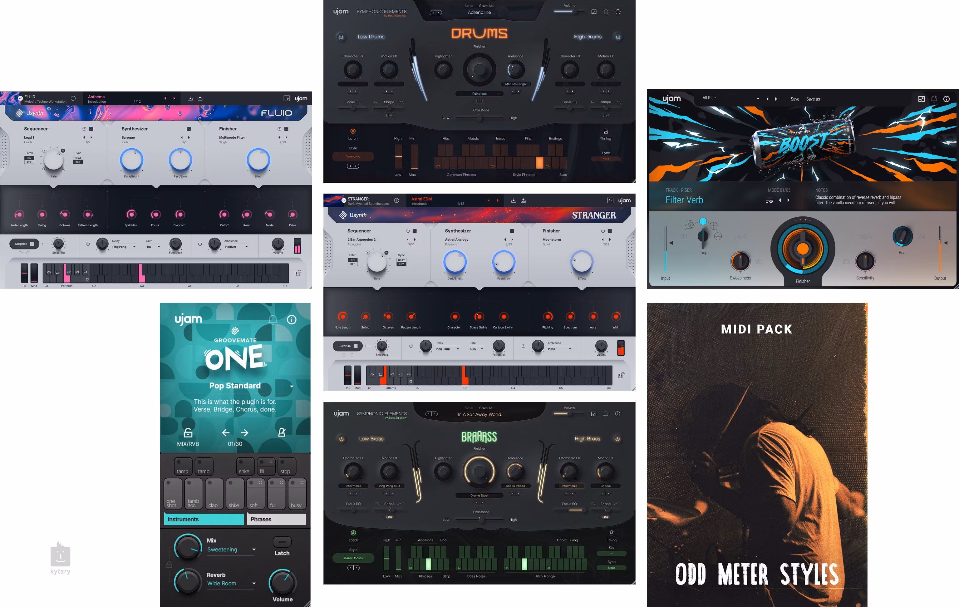 Die Music Creation Suite enthält 60 Plugins, über 1600 Styles, 30.000 Phrasen und 4000 Voreinstellungen. Darüber hinaus gibt es 139 Charakter-Presets und 725 Multi-Effekt-Modi. Mit der MIDI-Drag-and-Drop-Funktion, die in Virtual Pianists, Beatmaker, Drummer, Bassisten und Gitarristen zur Verfügung steht, lassen sich Patterns ganz einfach in Ihre DAW-Spur exportieren.