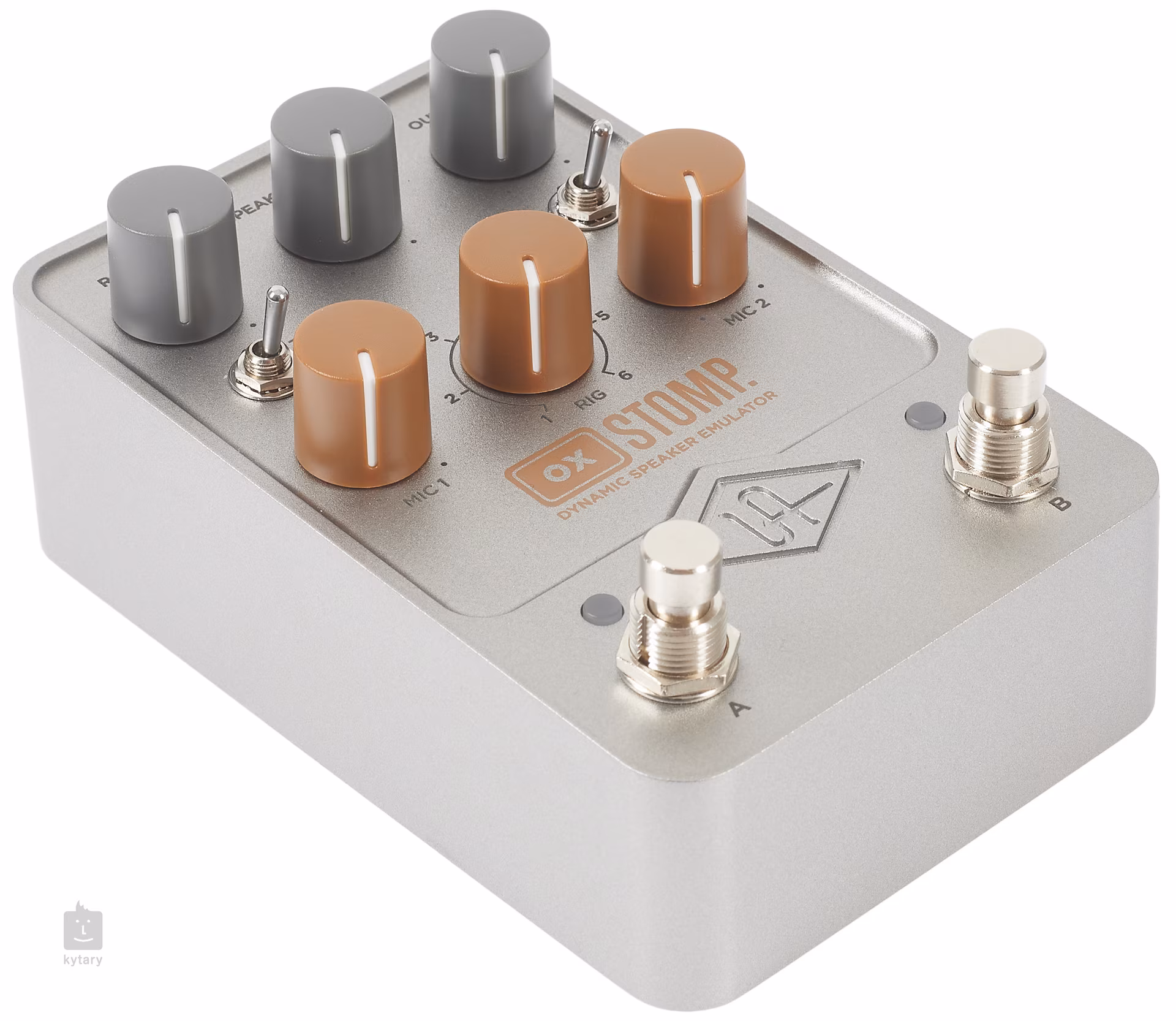 Der Universal Audio OX Stomp ist ein Stereo-Lautsprechersimulator im kompakten Pedal-Effektformat mit 22 legendären Gitarrenboxen, 6 Arten von Vintage-Mikrofonen (Kondensator-, dynamische und Bändchenmikrofone), bei denen Sie die grundlegenden Tonabnehmerparameter einstellen können, Effekten in Studioqualität (1176-Kompressor, Plate Reverb, Chorus, Flanger, drei Arten von Delay und 4-Band-EQ), Dynamic Room Modeling für authentische Surround-Sound-Erfassung, 6 Speicherplätze für Lieblings-Presets, dynamische Lautsprecher-Emulation, Stereo-Eingang und -Ausgang, UAFX Control über Bluetooth und USB-C-Update.