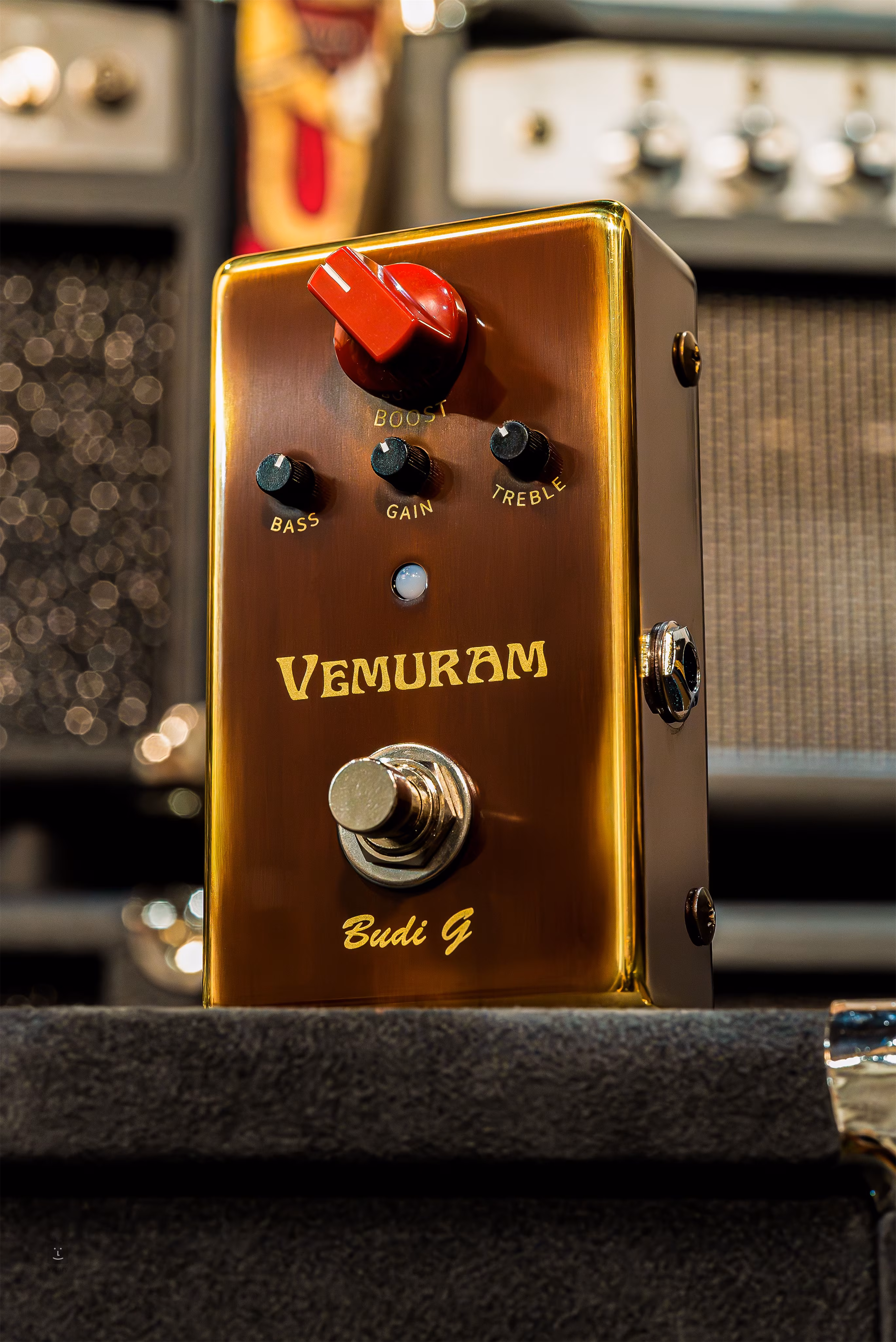Der Vemuram Budi-G ist ein Booster und subtiler Overdrive, der den Klangcharakter anderer Effektpedale in deinem Pedalboard verbessern kann. Er verfügt über einen Pegelregler für die Signalverstärkung, einen Zweiband-EQ für die Feinabstimmung mit deinem Gerät und einen Overdrive-Pegelregler. Mit dem Sat-Trimmer wird der Gain-Pegel voreingestellt.