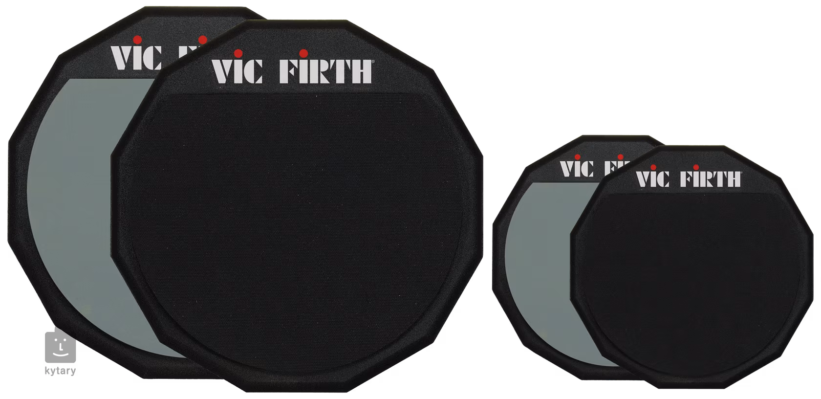Die Vic Firth Trainingspads sind in zwei Größen, 6 oder 12 Zoll, und in zwei Ausführungen erhältlich - die Basisversion ist aus weichem Gummi für ein wirklich leises Training, die mit dem Buchstaben "D" gekennzeichneten verstärkten Versionen haben auch die Möglichkeit, eine dickere Gummibasis für ein intensiveres Training und die Möglichkeit, jeden Schlag zu hören, zu verwenden, und sie haben eine Holzbasis.