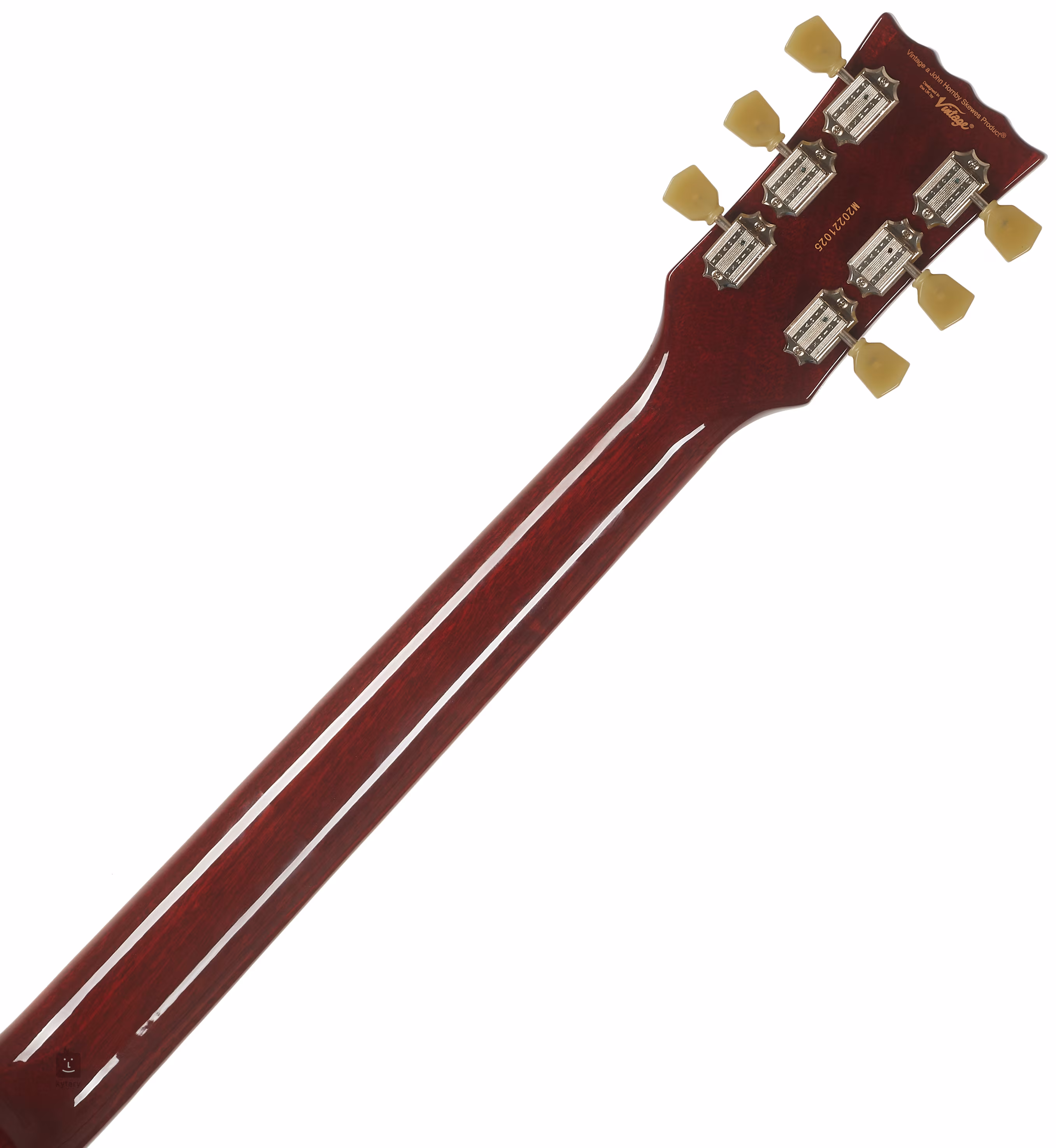 Die VINTAGE V100PCS ist eine stilvolle LP Single-Cut E-Gitarre mit Mahagonikorpus, geschnitzter Ahorndecke, Boulevard Black Finish und stilvollem Binding. Zwei Wilkinson-Tonabnehmer im Soap-Bar-Design verleihen der Gitarre die definierten Bässe und druckvollen Mitten von Humbuckern sowie die transparenten Höhen klassischer Singlecoil-Tonabnehmer. Der Klangcharakter lässt sich mit zwei Lautstärkereglern, zwei Tonreglern und einem dreistufigen Pickup-Schalter formen. So können Sie die Einstellungen genau auf Ihre Bedürfnisse abstimmen - egal, ob Sie einen treibenden Rocksound oder einen warmen Bluessound bevorzugen. Die Saiten werden über einen GraphTech Nubone-Nullbund in zuverlässige Grover-Stimmmechaniken und einen Wilkinson TOM-Saitenhalter in die Saitenreiter montiert.