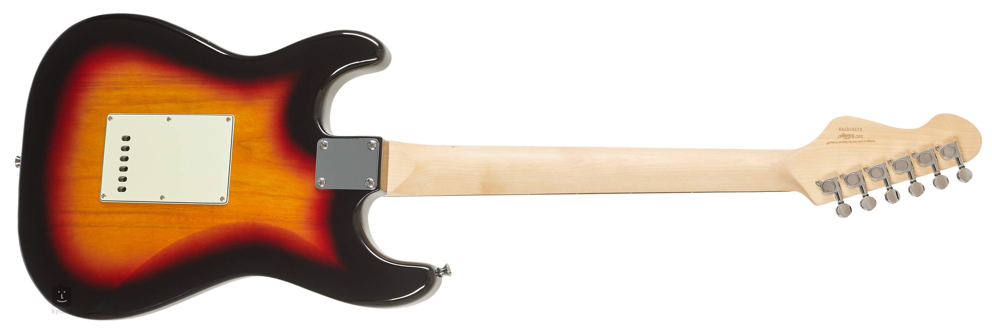 Die Saiten sind durch verchromte Druckgussmechaniken und Vibrato mit verstellbaren Sätteln verankert. Das Styling wird durch traditionelle Elemente in Form eines dreilagigen Pickguards und Positionspunkten auf dem Griffbrett akzentuiert.