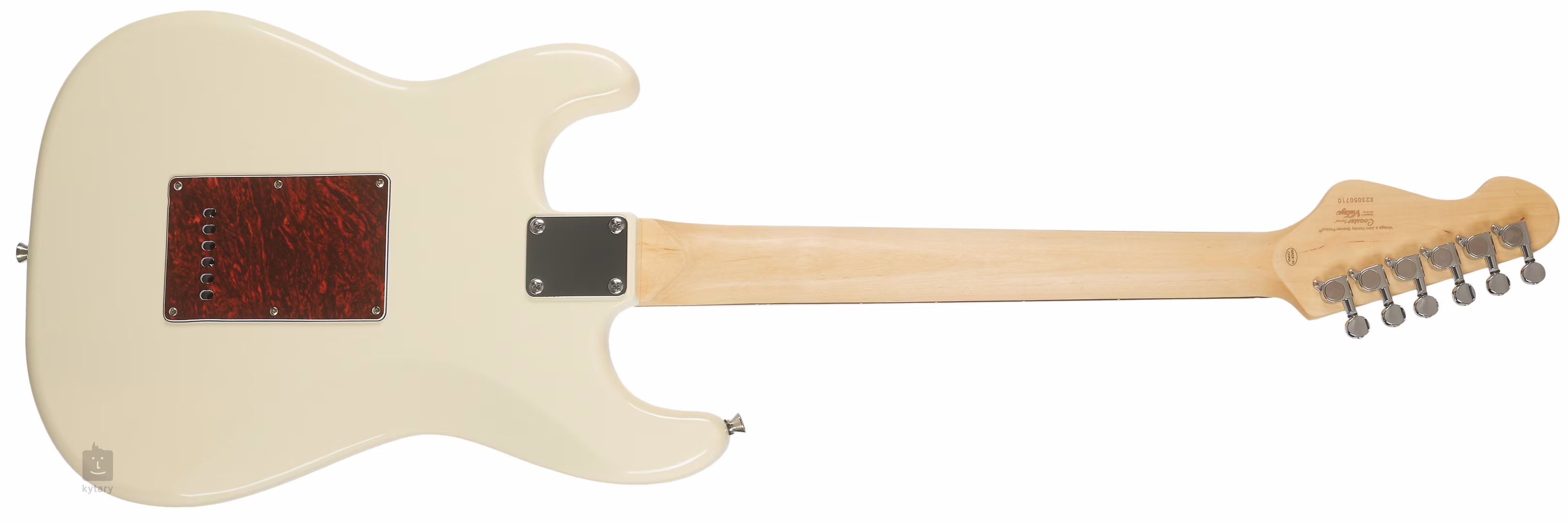Die Saiten sind durch verchromte Druckgussmechaniken und Vibrato mit verstellbaren Sätteln verankert. Das Styling wird durch traditionelle Elemente in Form eines dreilagigen Pickguards und Positionspunkten auf dem Griffbrett akzentuiert.