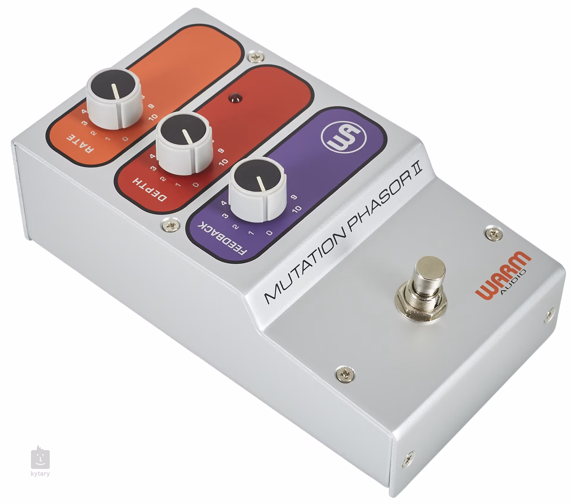 Der Warm Audio Mutation Phasor ist eine originalgetreue Nachbildung des elektro-optischen Phaser-Pedals aus den 1970er Jahren, dessen satte psychedelische Sounds von Spielern wie Billy Corgan, Tom Bukovac, Robin Trower und anderen bevorzugt wurden. Wie das Original bietet es recht intuitive Bedienelemente - Depth und Rate bestimmen die Intensität und Geschwindigkeit der Effektmodulation, während Feedback das bereits modulierte Signal zum Eingang zurückführt und es erneut durch die Modulationsschaltungen laufen lässt.