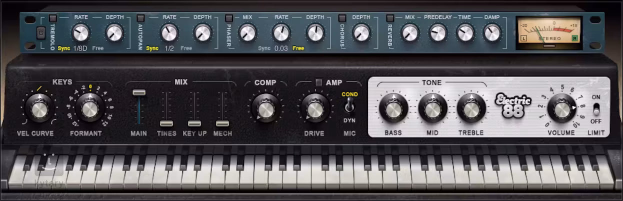 Inhalt der Sammlung - Bass Slapper - Codex Wavetable Synth - Elektrisches 200er Klavier - Elektrisches Klavier 88 - Electric Grand 80 Piano - OneKnob Pumper - Zischlaute - Smack Attack