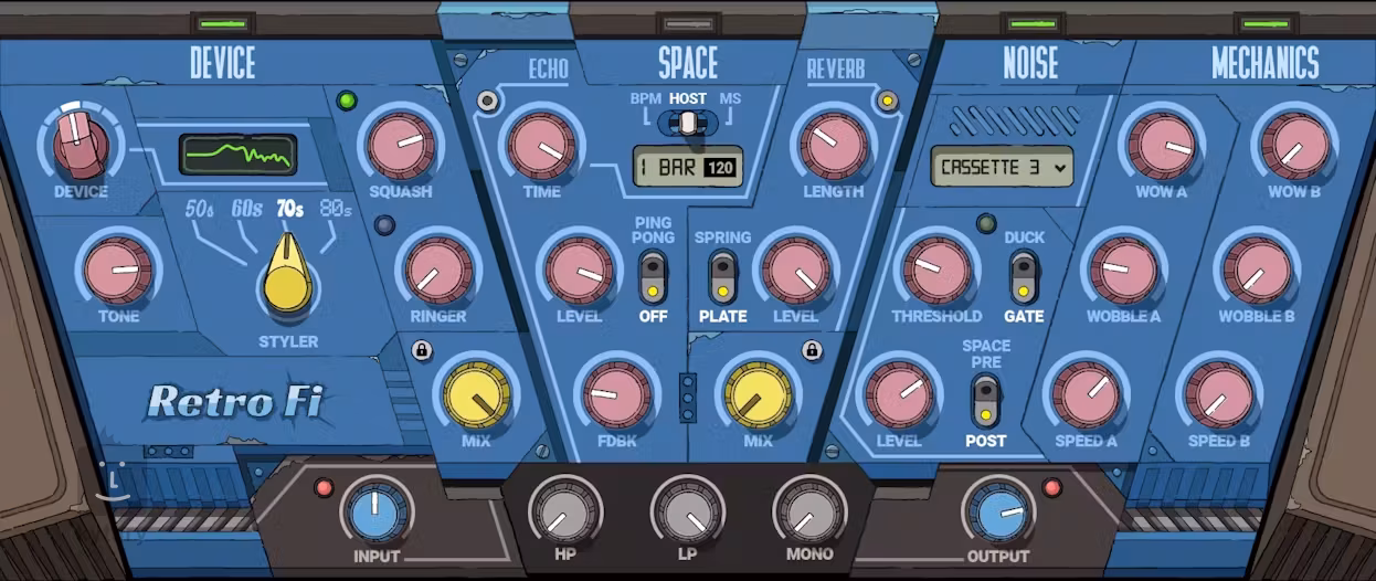 Waves Retro Fi ist ein hochwertiges Effekt-Plugin, das authentische Lo-Fi-Texturen und warme Analog-Sounds bietet. Dieses Plugin ist ideal für Musikschaffende, die ihren Tracks eine nostalgische Note verleihen oder einfach jedem Musikstück Charakter verleihen möchten. Retro Fi bietet vier Hauptmodule - Device, Space, Noise und Mechanics, die Sie kombinieren und bearbeiten können, um den Sound an Ihre Bedürfnisse anzupassen.