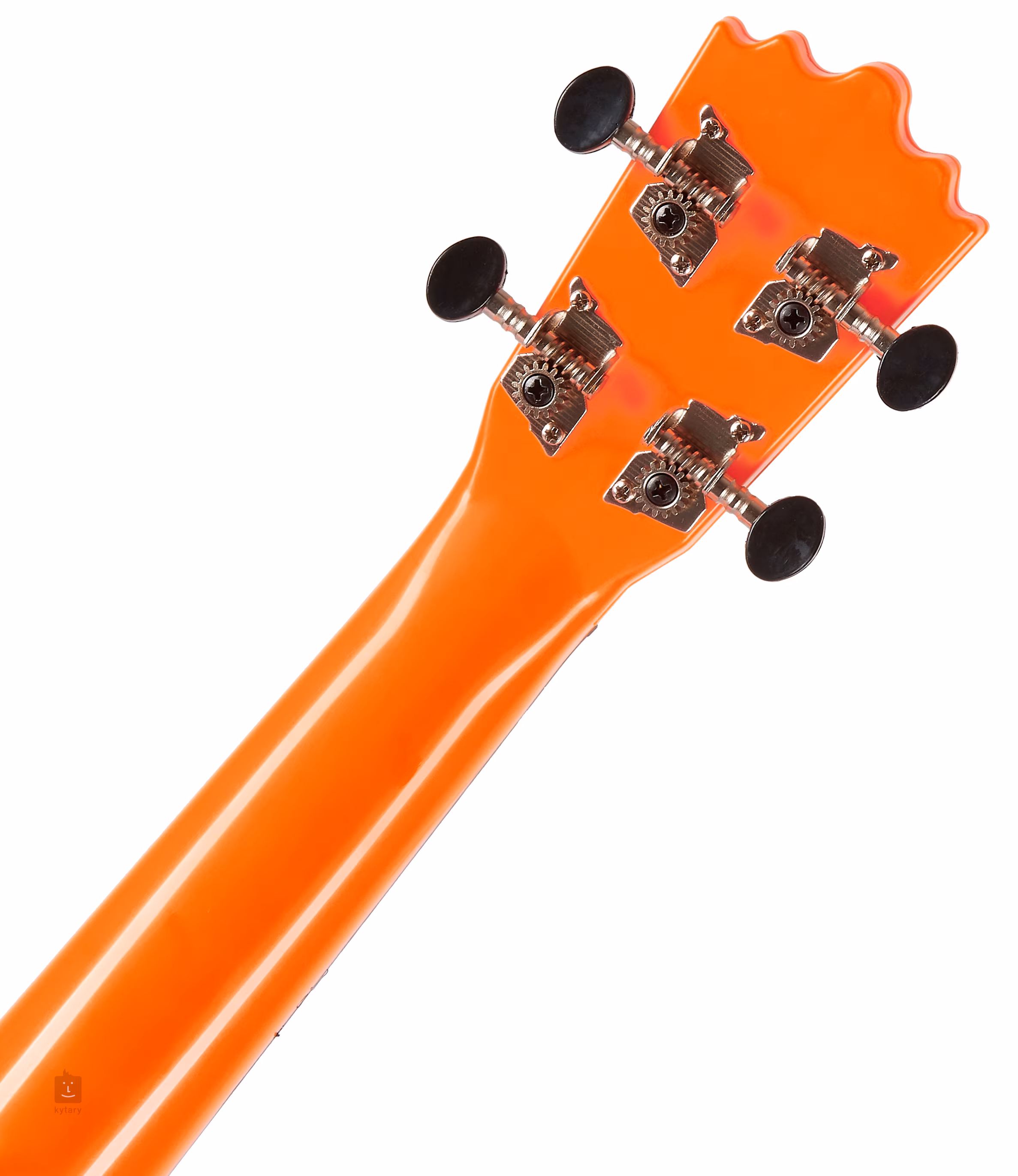 Die Woodi hat die Abmessungen einer traditionellen Sopran-Ukulele und ist mit 12 Bünden ausgestattet, wobei vernickelte Stimmmechaniken für die präzise Stimmung sorgen.