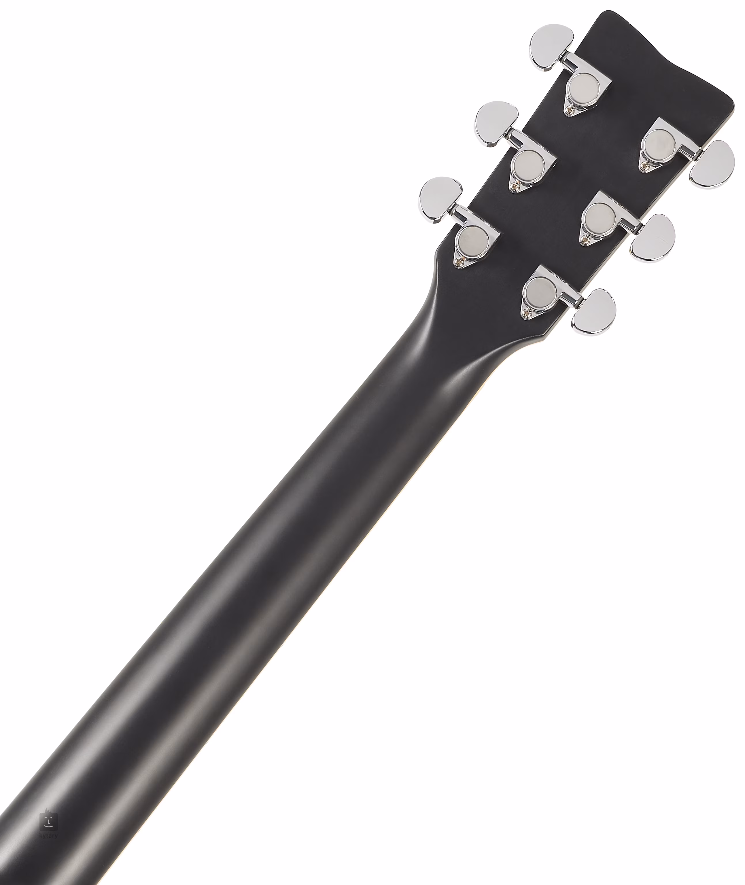 Für die Verstärkung des akustischen Klangs sorgt der firmeneigene Vorverstärker mit Dreiband-Equalizer und integriertem Stimmgerät, der in den Gitarrenboden eingebaut ist, sowie ein SRT-Piezo-Tonabnehmer. Ein Palisander-Griffbrett mit zwanzig Bünden ist auf den Nato-Hals geklebt. Die Stimmstabilität wird durch die Befestigung der Saiten durch den Sattel und den Nullbund aus Urea-Kunststoff in den Die-Cast-Stimmmechaniken und dem Palisander-Griffbrett des Unternehmens gewährleistet. Das stilvolle Aussehen des Instruments wird durch ein cremefarbenes Korpusbinding, eine Rosette aus einem Perlenring (Abalone) und ein praktisches Schlagbrett unterstrichen.