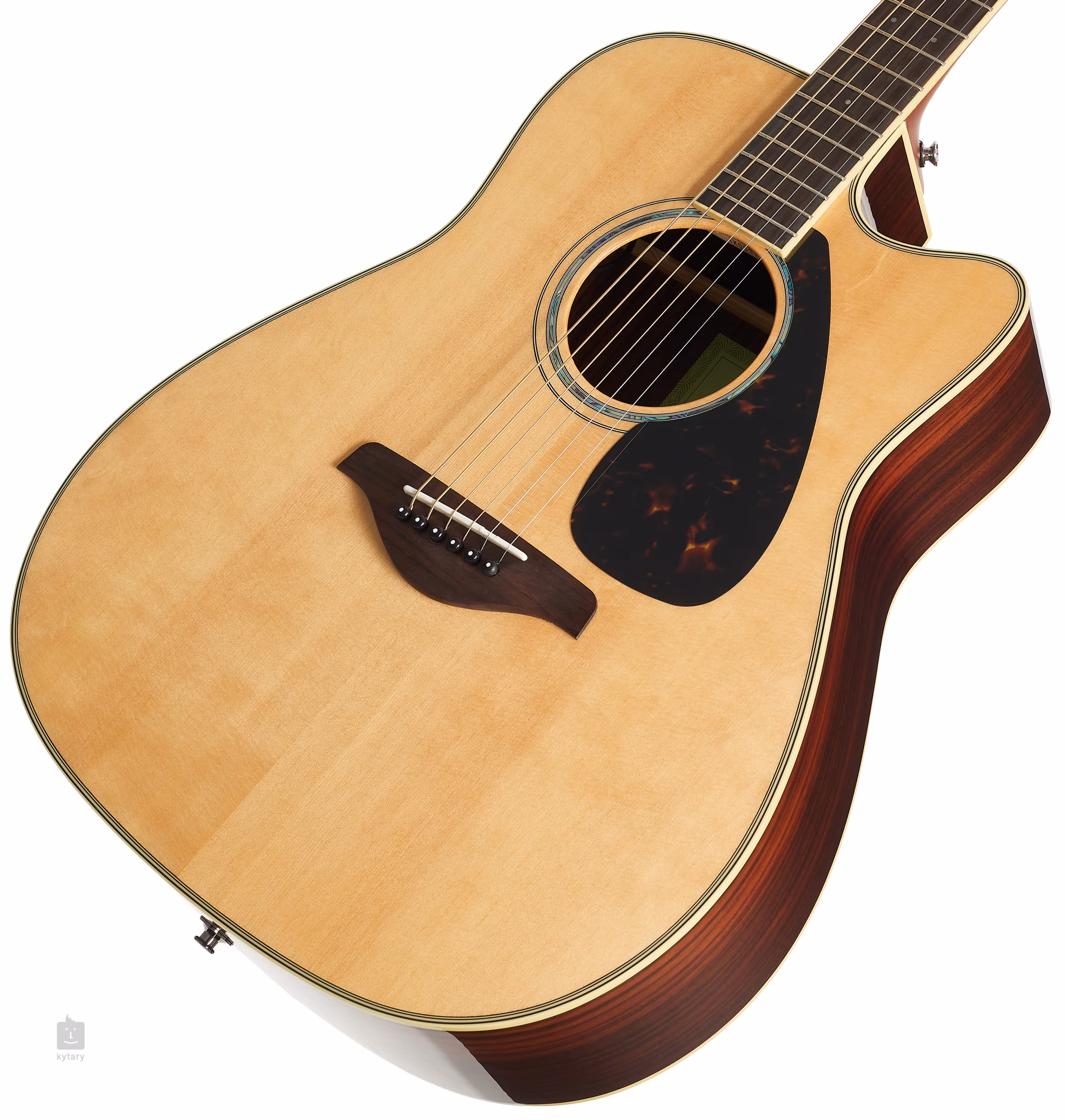 Die Frontplatte des FGX830C ist aus massiver Sitka-Fichte gefertigt, während die Bodenplatte und die Zargen aus Palisander-Sperrholz bestehen. Die akustische Leistung wird durch ein neues Design mit reduzierten X-Rippen auf der Frontplatte auf ein höheres Niveau gehoben, was der Gitarre eine stärkere, lautere Reaktion in den unteren Mitten verleiht. Ein praktischer Cutaway im unteren Bereich des Korpus bietet eine gute Anpassung auch an höhere Griffbrettpositionen.