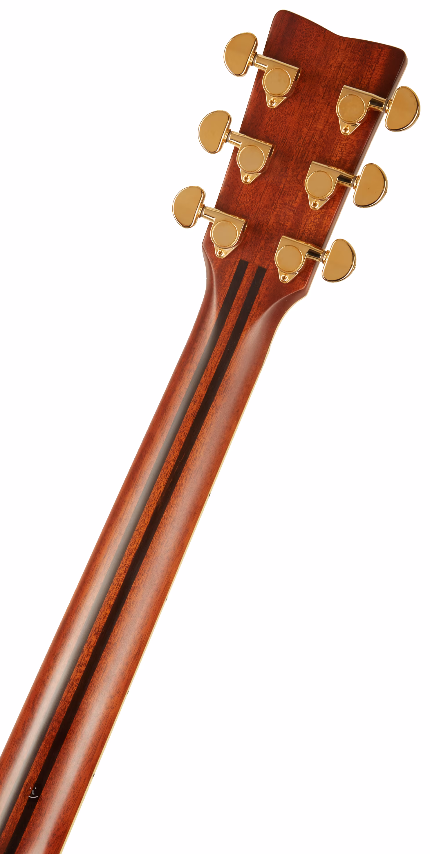 Die spezielle, unselektierte Riffelung auf den Decken der Gitarren bewahrt den charakteristischen hellen Ton der L-Serie und verstärkt gleichzeitig die Bassfrequenzen. Zum komfortablen Spielgefühl tragen die angepasste Saitenhöhe und -abstände, ein abgerundetes Griffbrett mit Binding und ein gefälliges Halsprofil bei, das aus fünf Teilen Mahagoni und Palisander zusammengeleimt ist.