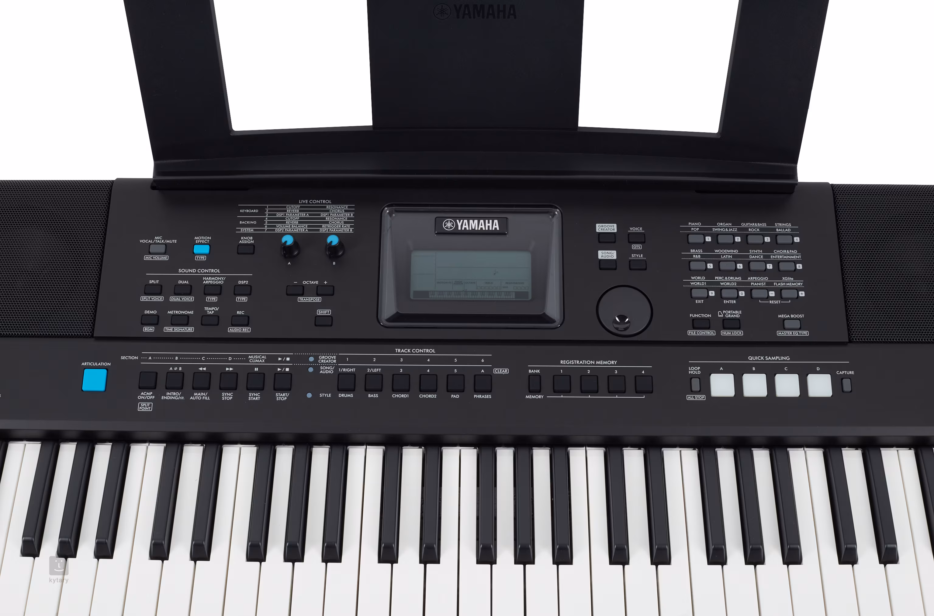 Das Yamaha PSR-E473 ist ein neues Keyboard in seiner Preisklasse, das klanglich sehr vielseitig ist und von moderner Popularmusik bis hin zu alten Klassikern alles abdeckt. Mit der Super Articulation Lite Technologie stehen 820 realistische Sounds zur Auswahl, die zum Beispiel einen typischen Scratch auf E-Gitarren bieten oder das Fingerstyle-Spiel auf klassischen Gitarren simulieren. Natürlich gibt es auch den hochauflösenden Klang eines akustischen Pianos oder fortschrittliche Funktionen wie den Live-Drehregler zum Einstellen synthesizerähnlicher Parameter, Sampling, Groove Creator zum Erstellen von Beats, ein ausgeklügeltes Soundsystem oder die Aufnahme auf USB-Speicher.