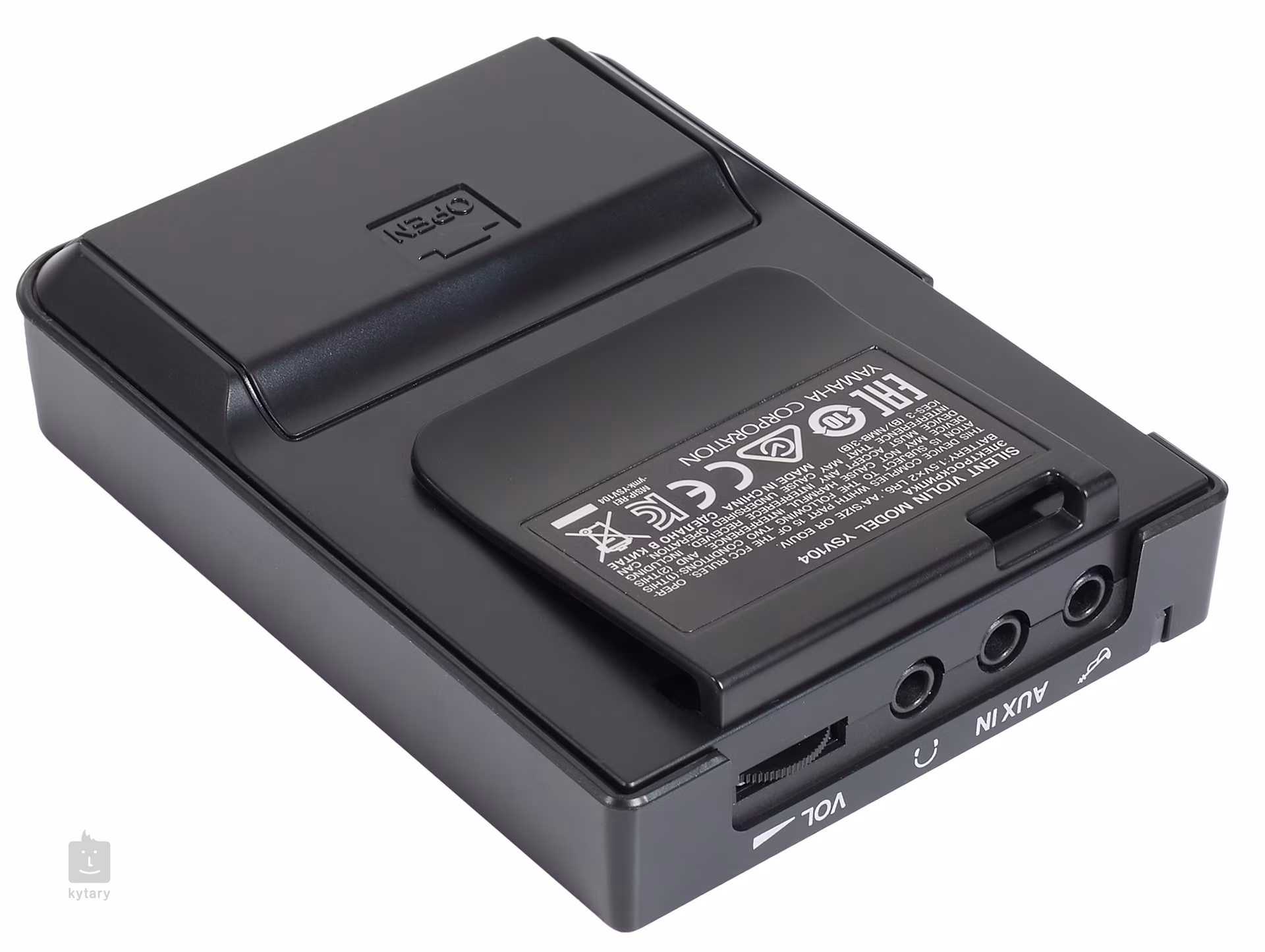 Neben der Geige selbst, den Kopfhörern und den Verbindungskabeln enthält das Paket auch eine Control Box, mit der Sie die Lautstärke regeln, zwischen zwei Halltypen (Room/Hall) wählen und Kopfhörer und eine externe Signalquelle, wie z. B. ein Telefon oder einen Player, anschließen können, um mit Ihrer Lieblingsmusik zu üben.